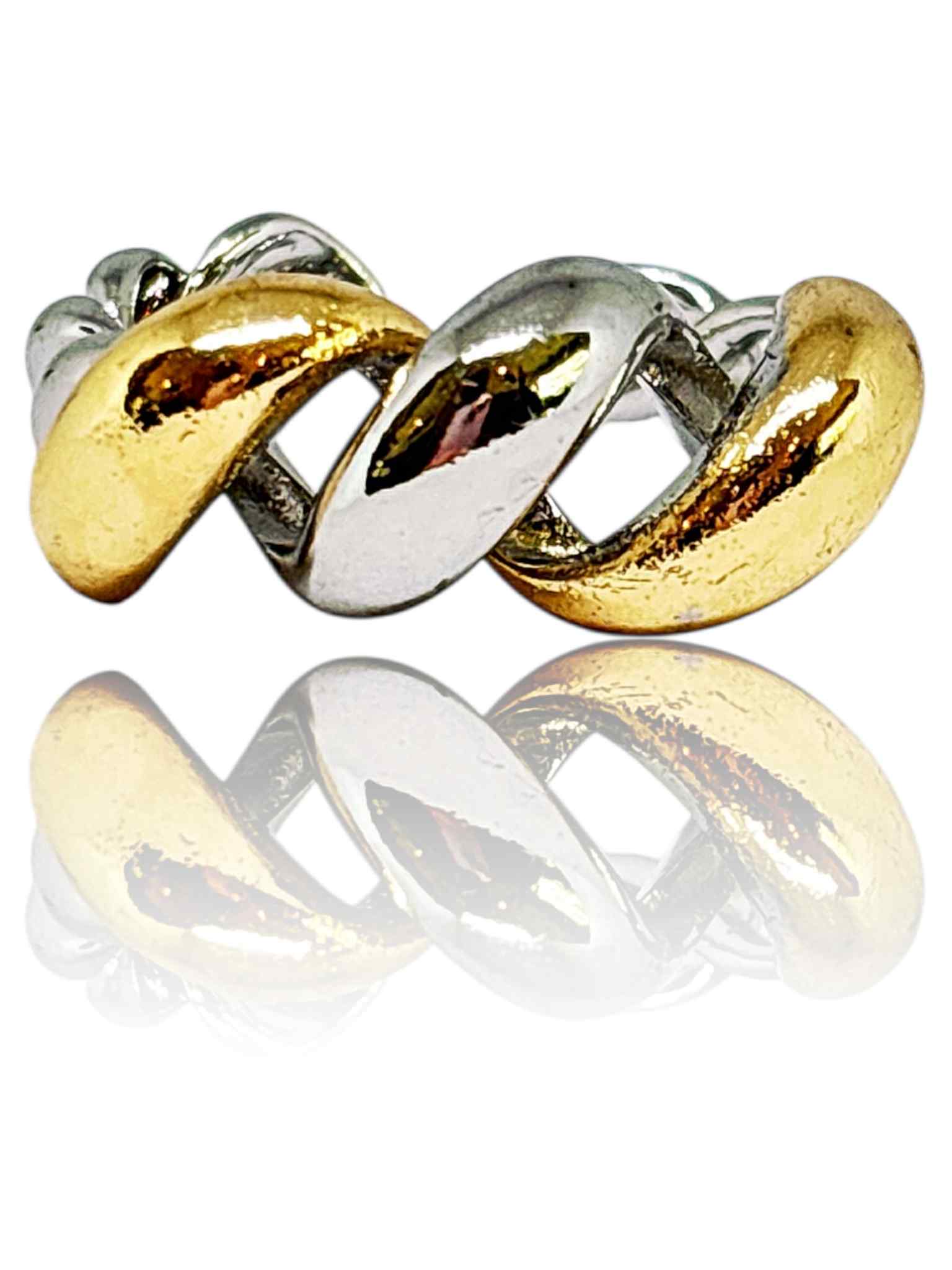 Δαχτυλίδι απο οικολογικό όρειχαλκο , δίχρωμο. Στριφτό με ανοιχτή γάμπα , αυξομειώνεται εως 3 νούμερα.