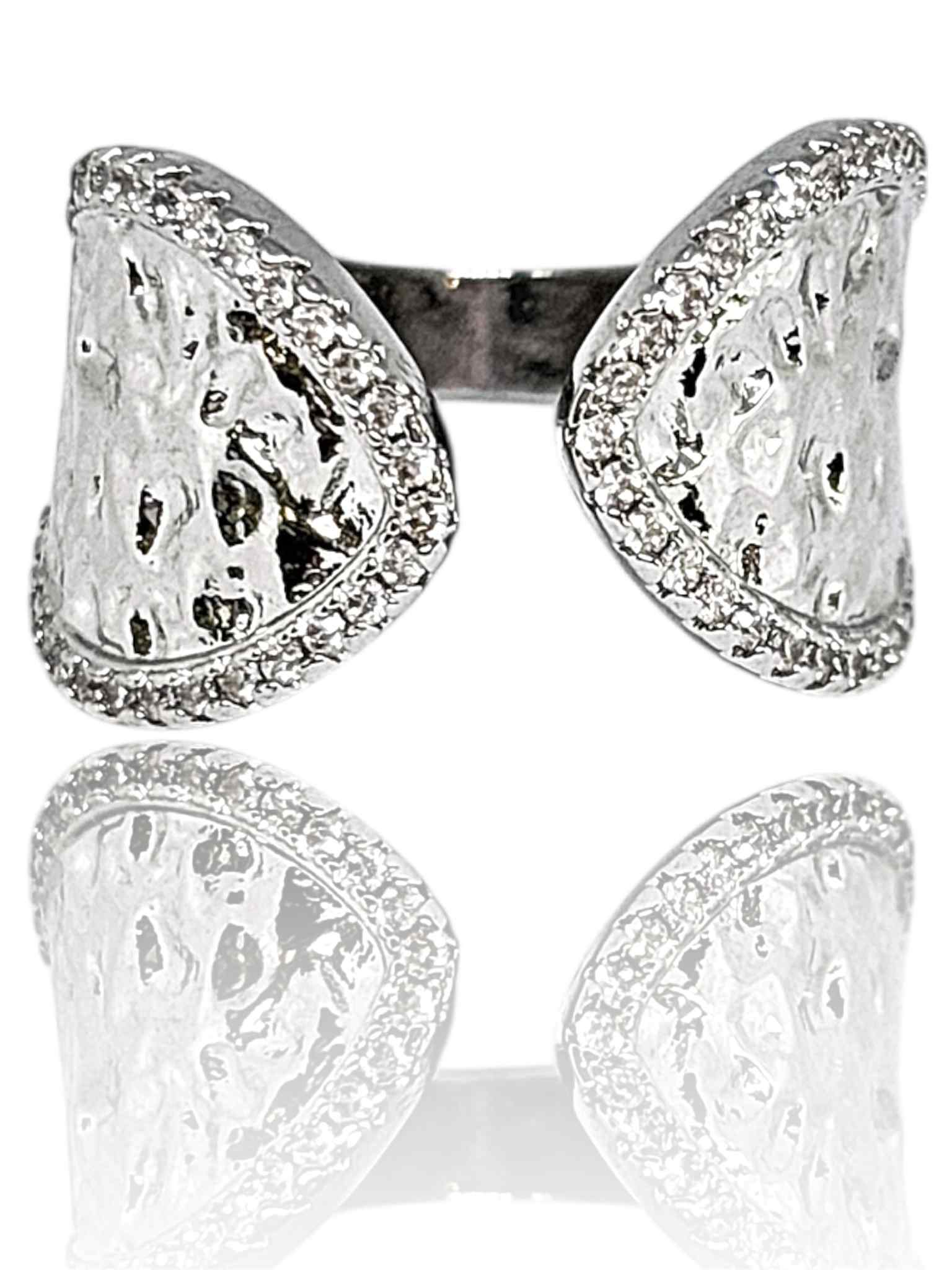 Δαχτυλίδι απο οικολογικό όρειχαλκο , επιπλατινωμένο. Σφυρίλατο με ζιργκόν. Ανοιχτό απο πάνω , αυξομειώνεται εως 3 νούμερα.