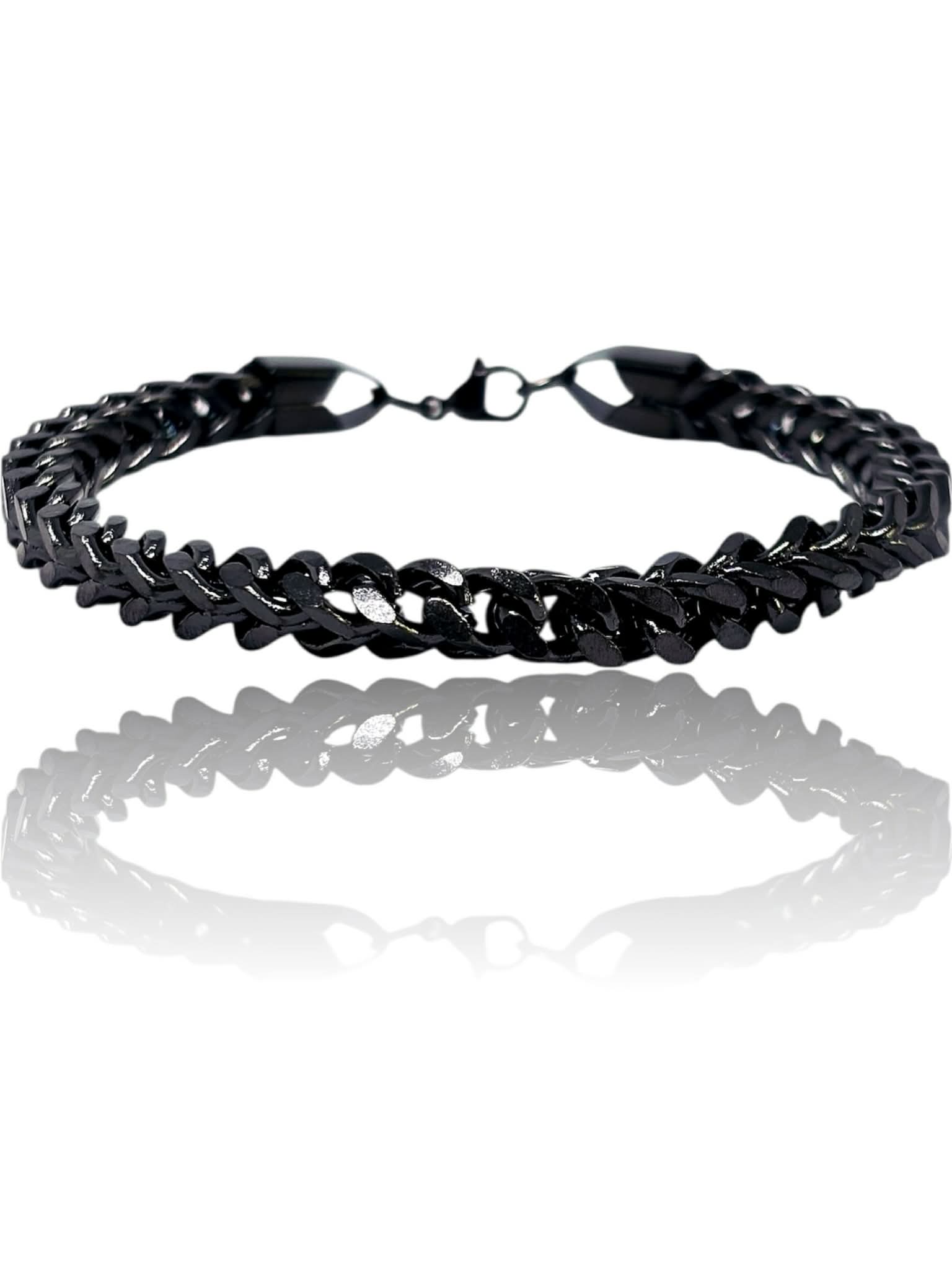 Αντρικό βραχιόλι απο ανοξείδωτο ατσάλι , με μάυρη πατίνα. Αλυσίδα τύπου φίδι.