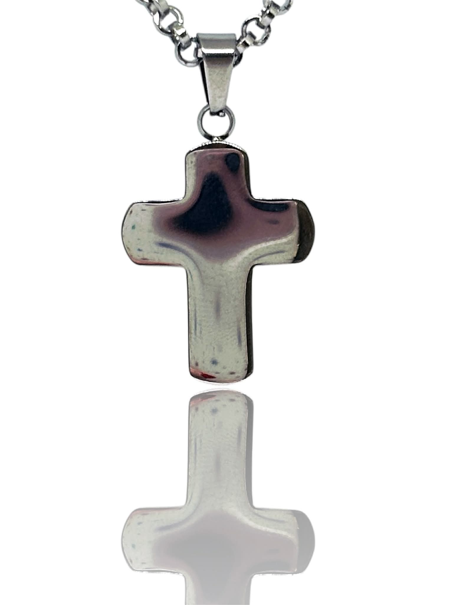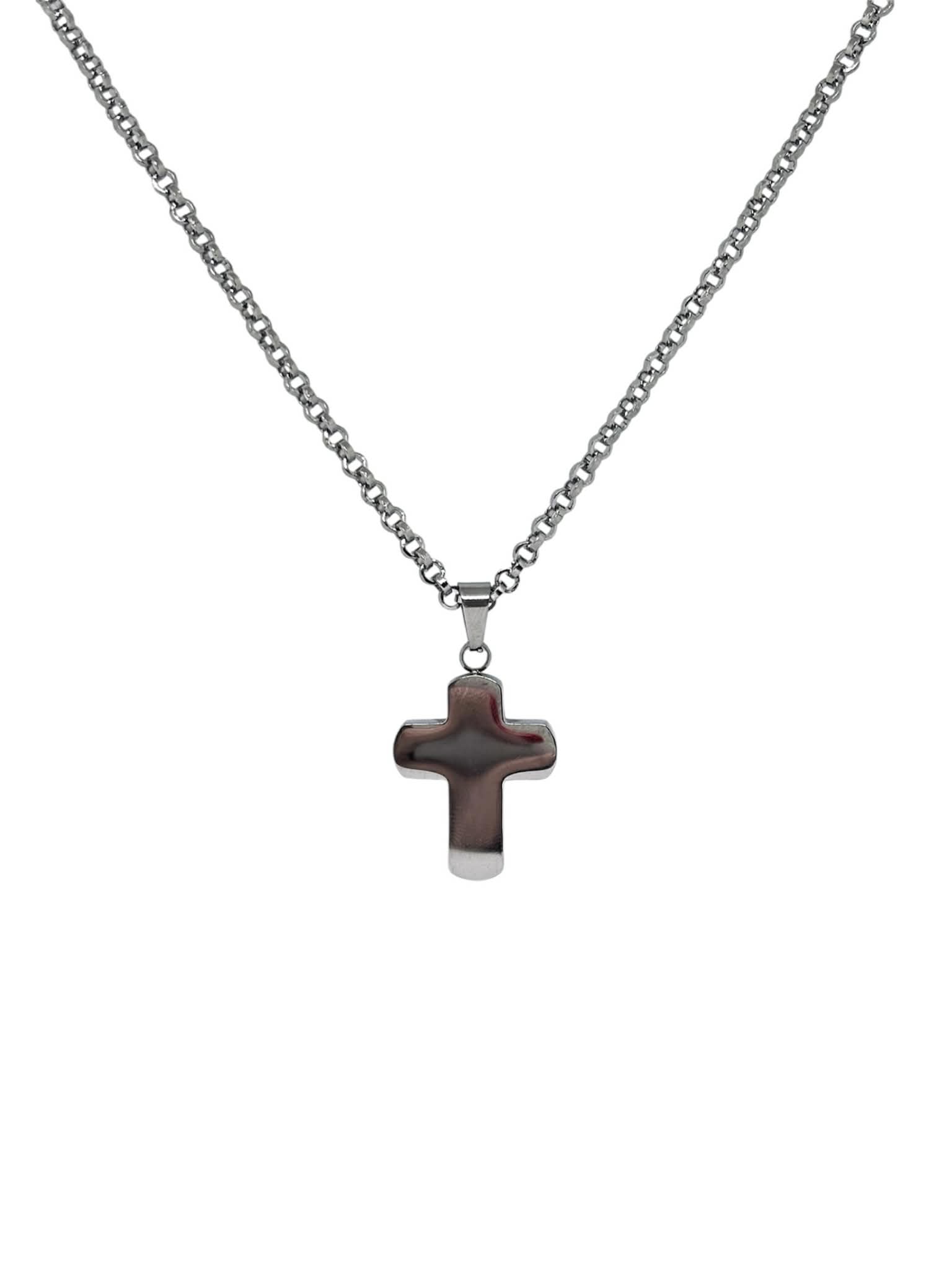 Αντρικό κολιέ απο ανοξείδωτο ατσάλι .Καδένα με εντυπωσιάκο σταυρό.