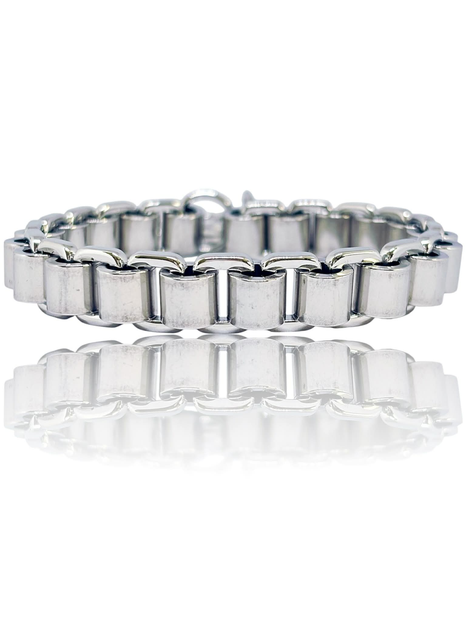 Βραχιόλι απο ανοξείδωτο ατσάλι, επιχρυσωμένο. Τετράγωνη χεισροπέδα με κούμπωμα ασφαλείας.