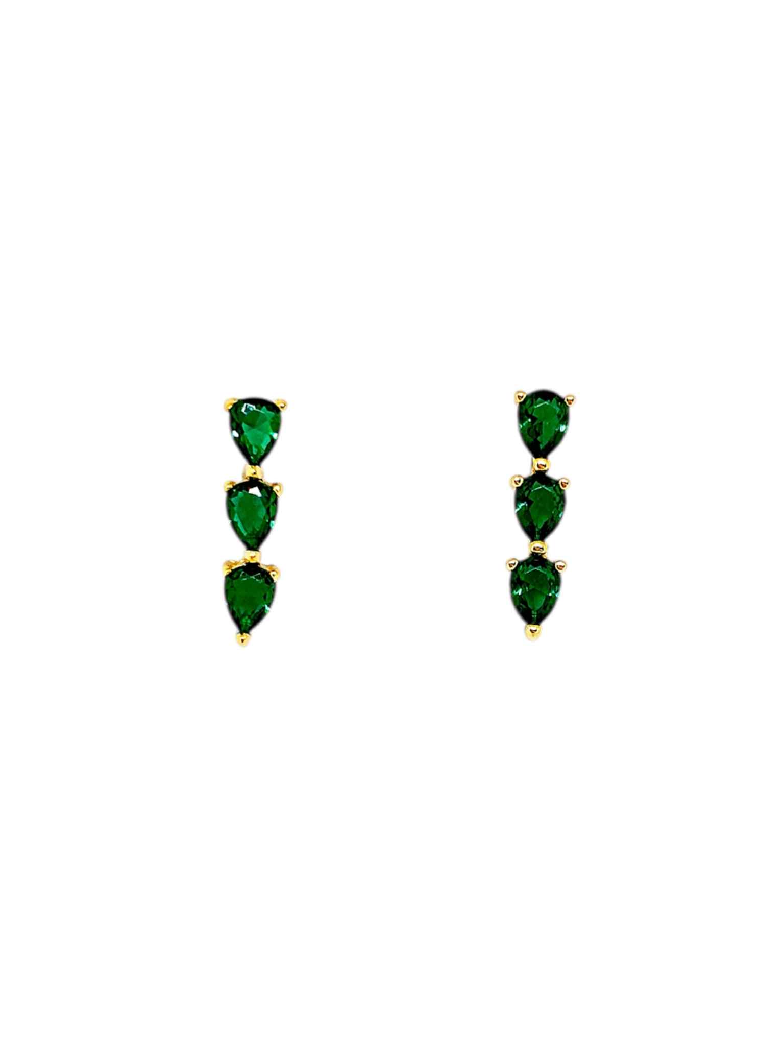 Σκουλαρίκια απο ασήμι 925* , επιχρυσωμένο. Καρφάκια με πράσινα ζιργκόν σε σχήμα δάκρυ.