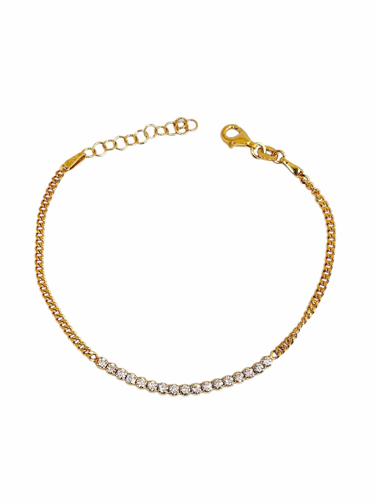 Βραχιόλι απο καθαρό ασήμι 925* , επιχρυσωμένο. Ριβιέρα με ζιργκόν, μισή μισή με καδένα.