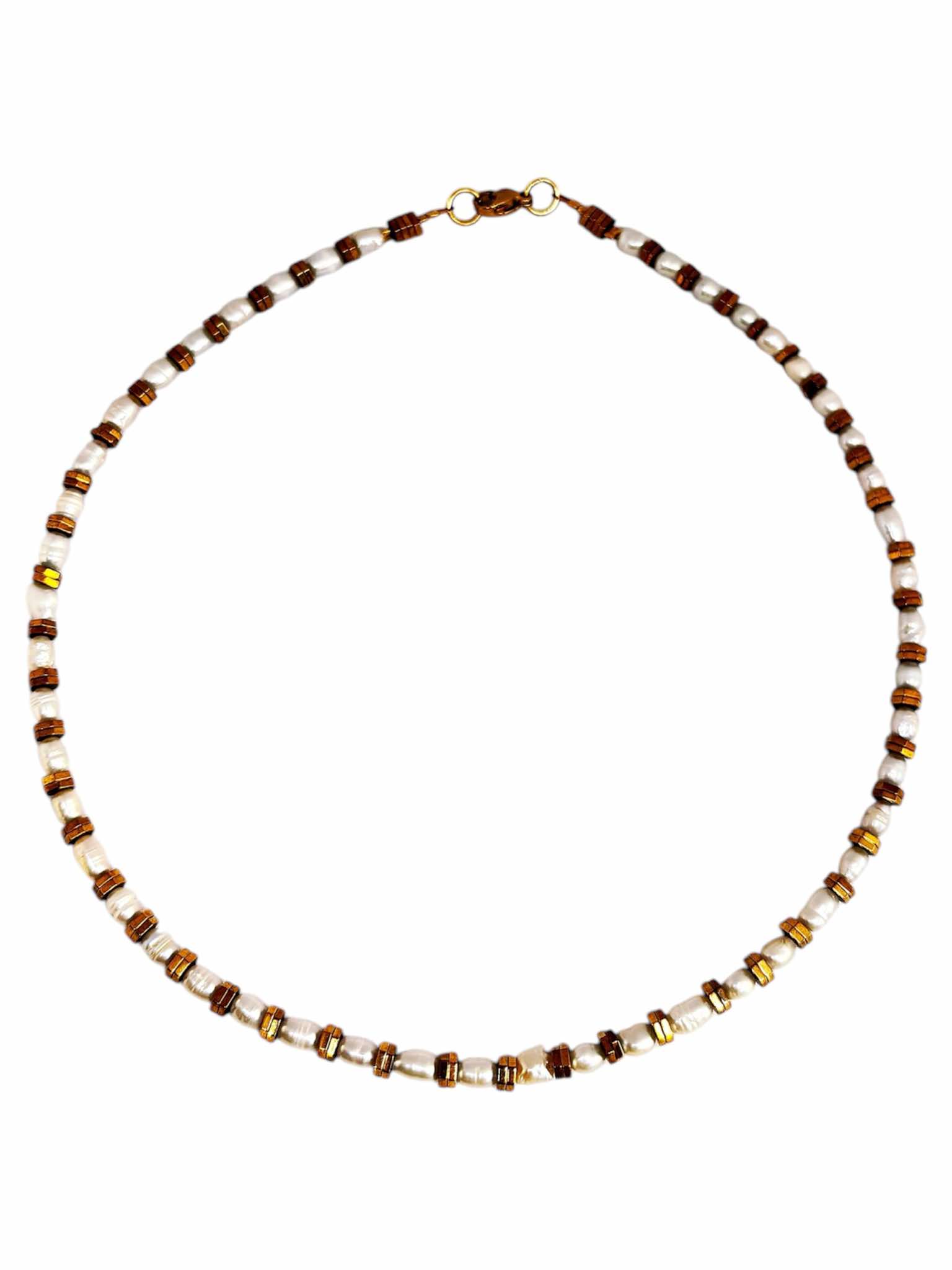 Χειροποίητο κολιέ , με μάυρο όνυχα διαμαντέ κοπή. Επίχρυσα μπιλάκια ενδιάμεσα , κρέμεται στο κέντρο ενα μενταγιόν λουλούδι με μαργαριτάρι. Δεμένο σε ανοξείδωτο ατσάλι με μεγάλο εντυπωσιακό κούμπωμα με ζιργκόν.