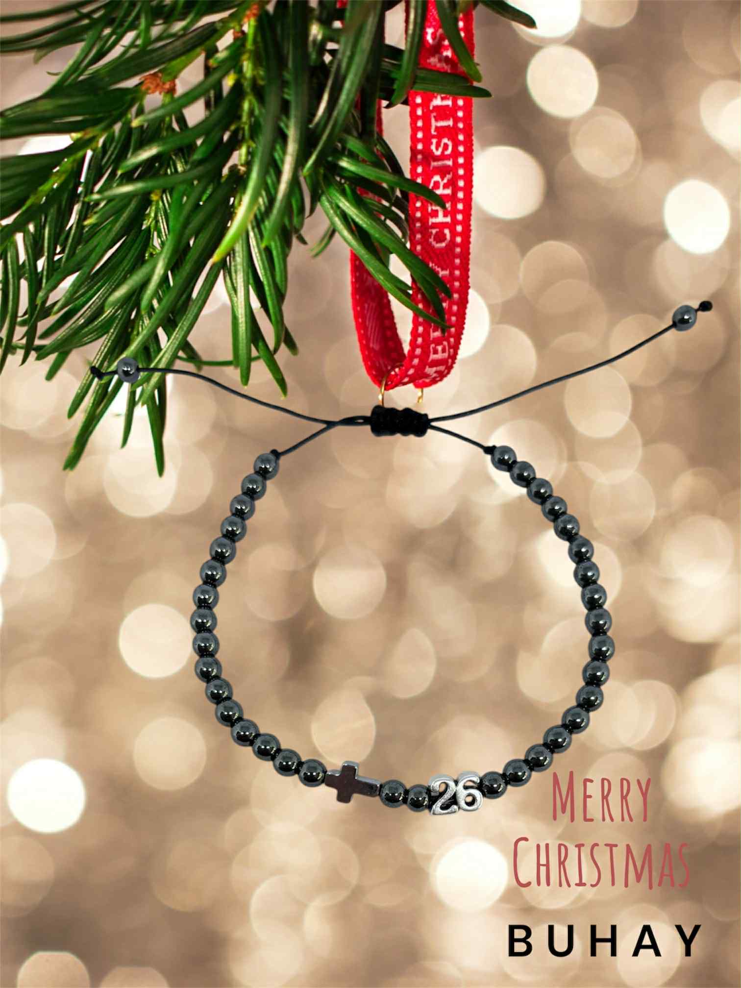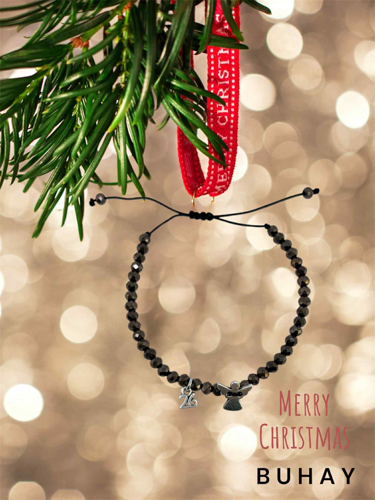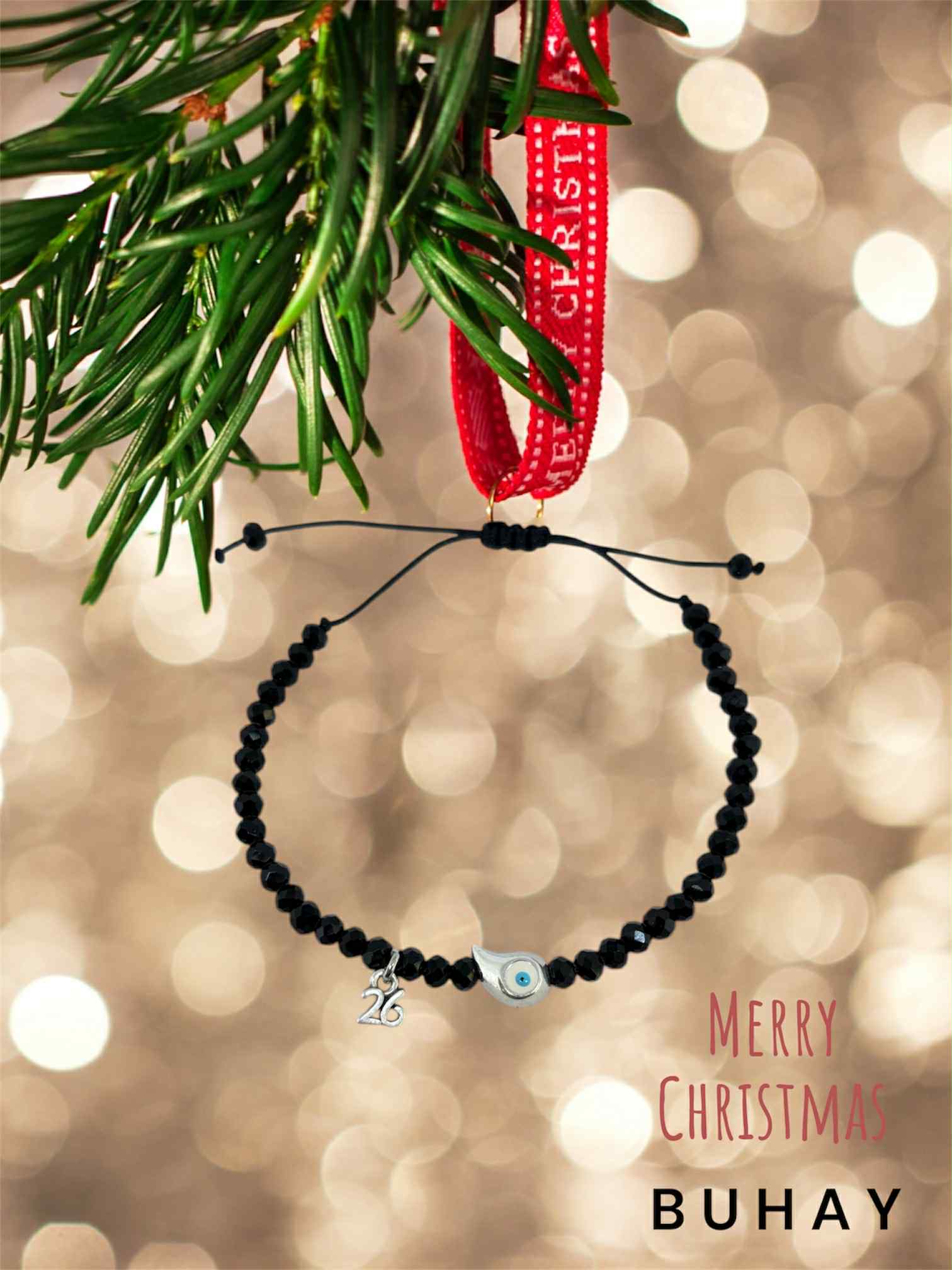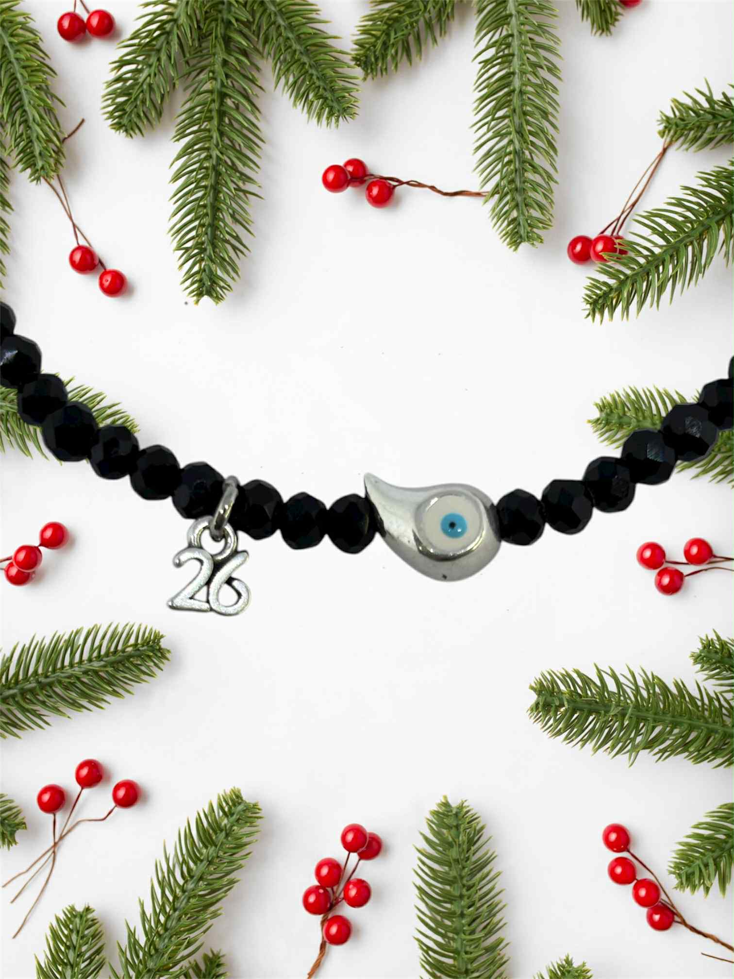 Χειροποιήτο βραχιόλι γούρι 2026, με ατσάλινο 26 και μάυρα κρυσταλλάκια.