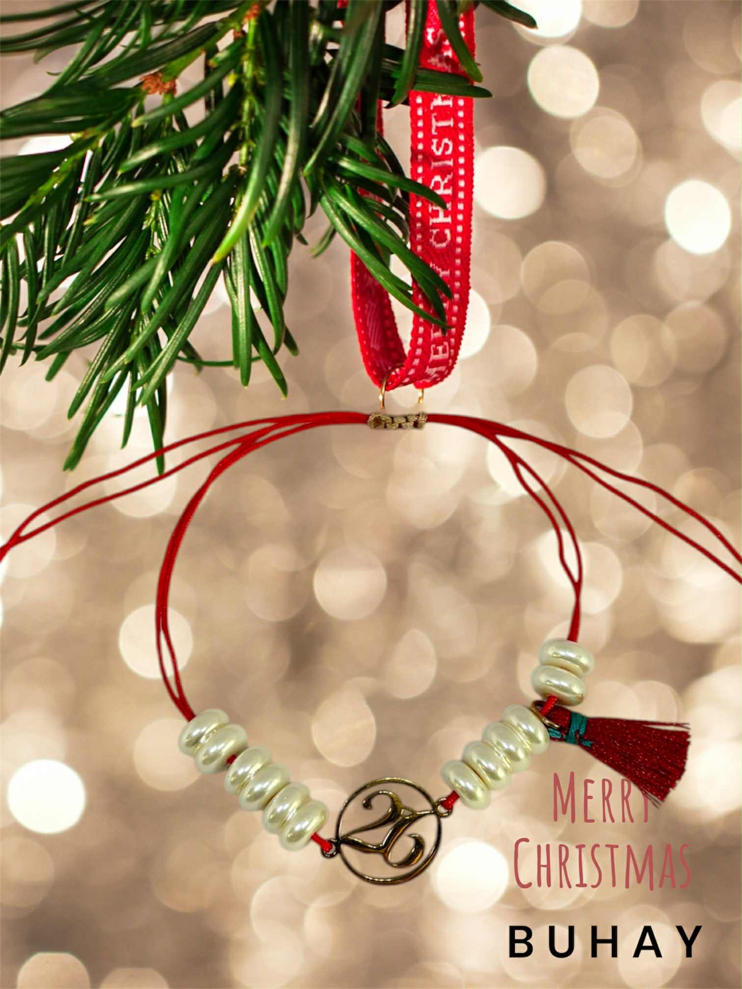 Χειροποιήτο βραχιόλι γούρι 2026, με ατσάλινο 26 και πέρλες.