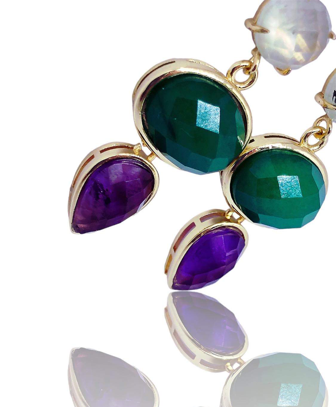 Χειροποιήτα σκουλαρίκια απο οικολογικό ορύχαλκο , επιχρυσωμένο. Δεμένα με ημιπολύτιμες πέτρες.