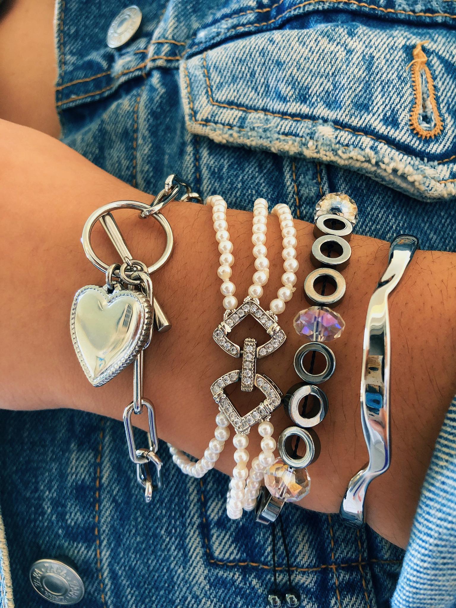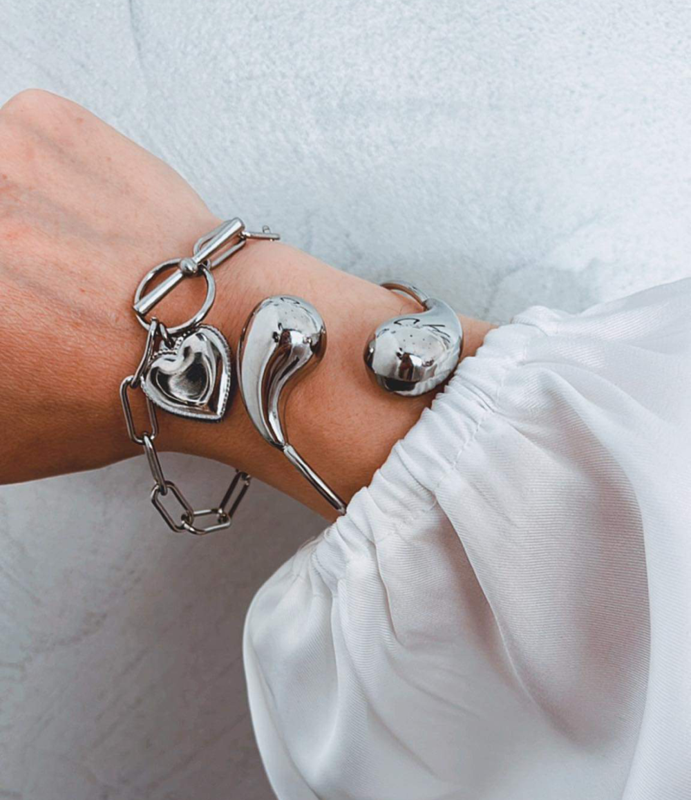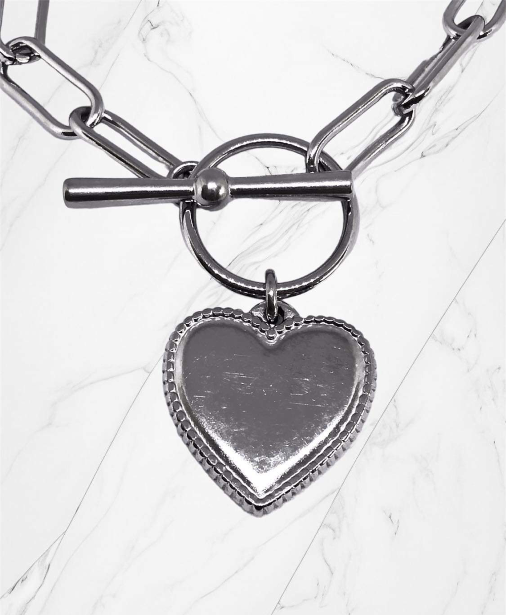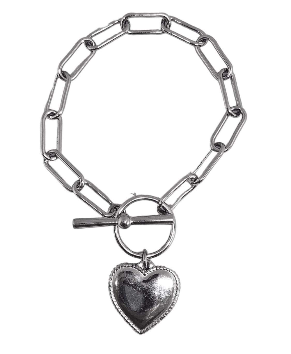 Βραχιόλι απο ανοξείδωτο ατσάλι . Αλυσίδα με οβάλ στενόμακρους κρίκους και στρογγυλό κούμπωμα που κρέμεται μια μασίφ καρδιά.