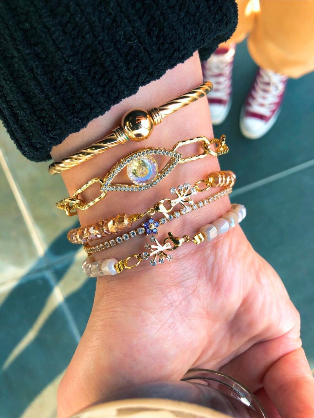 Βραχιόλι απο ανοξείδωτο ατσάλι , επιχρυσωμένο με ρόζ κρυσταλλάκια .