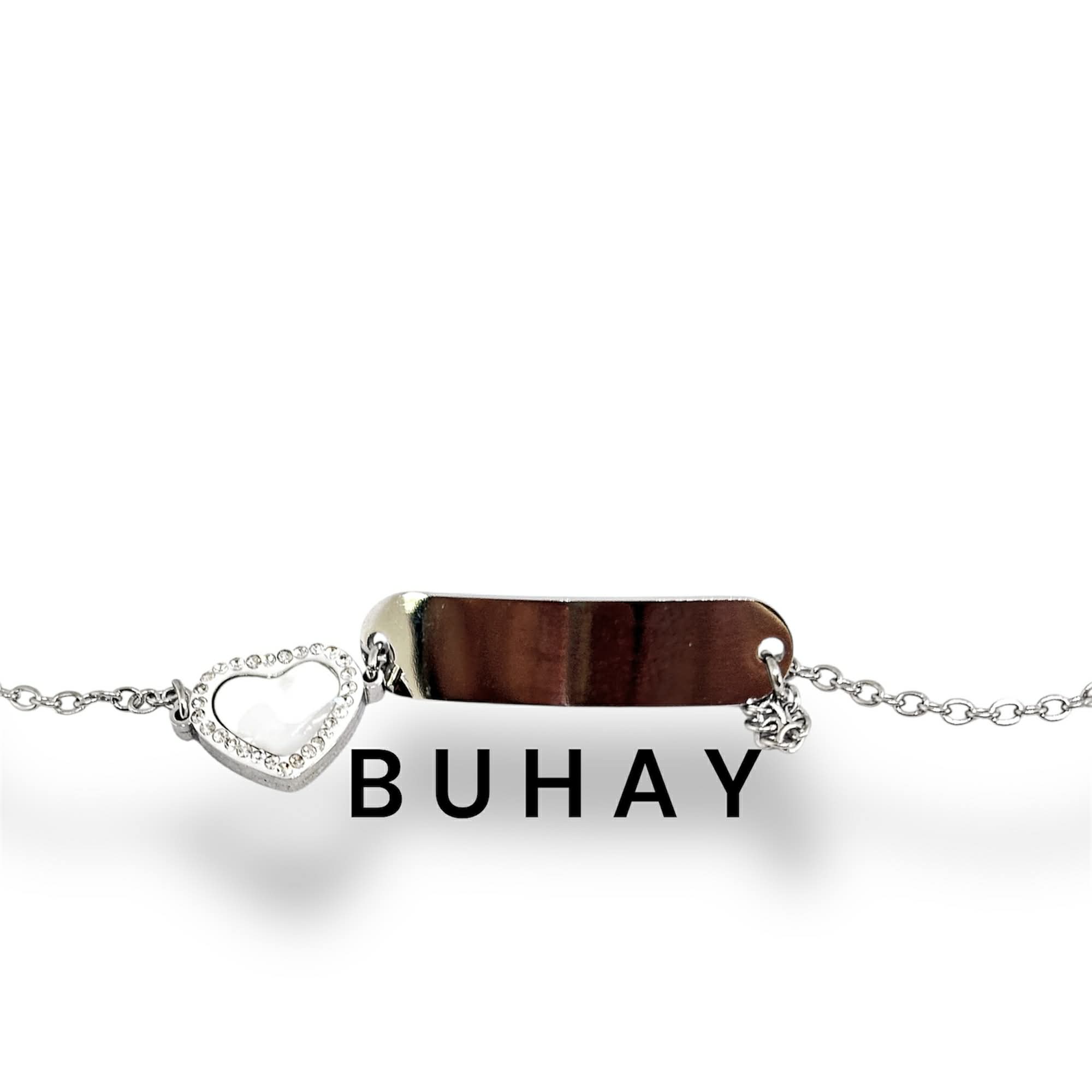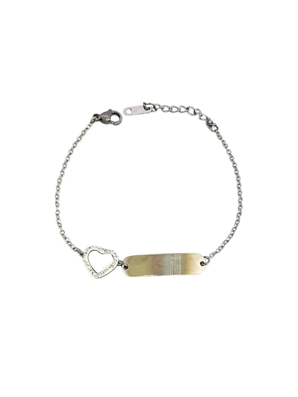 Βραχιόλι απο ανοξείδωτο ατσάλι. Ταυτότητα με κλασική αλυσίδα και καρδια με φίλντισι και ζιργκόν.