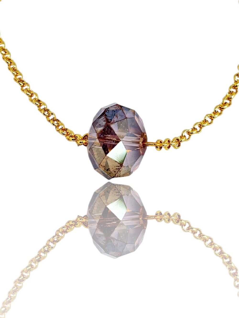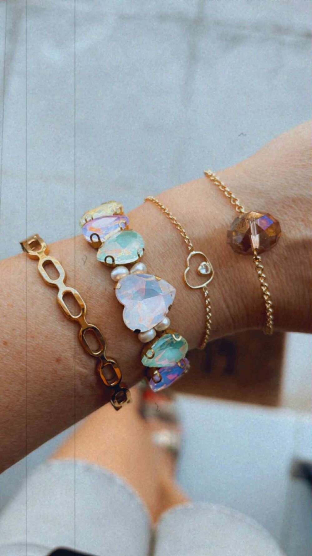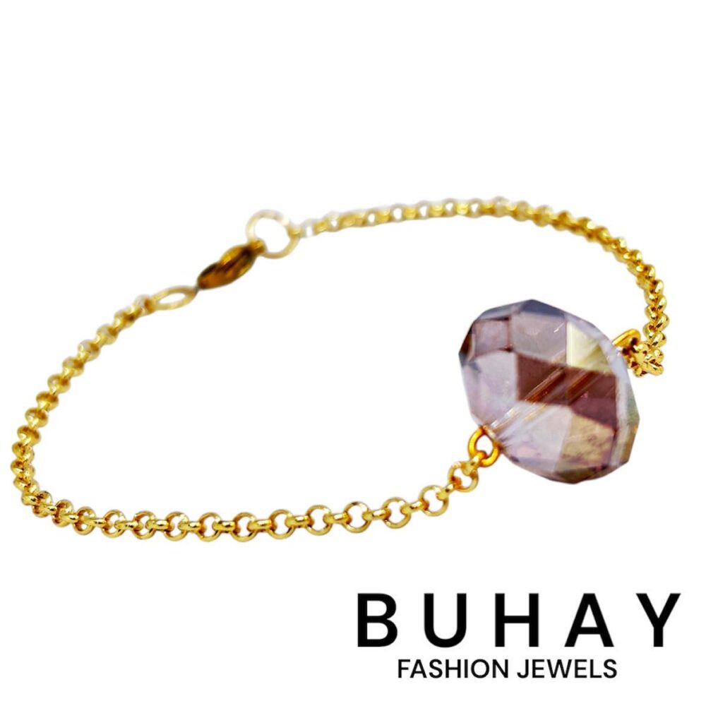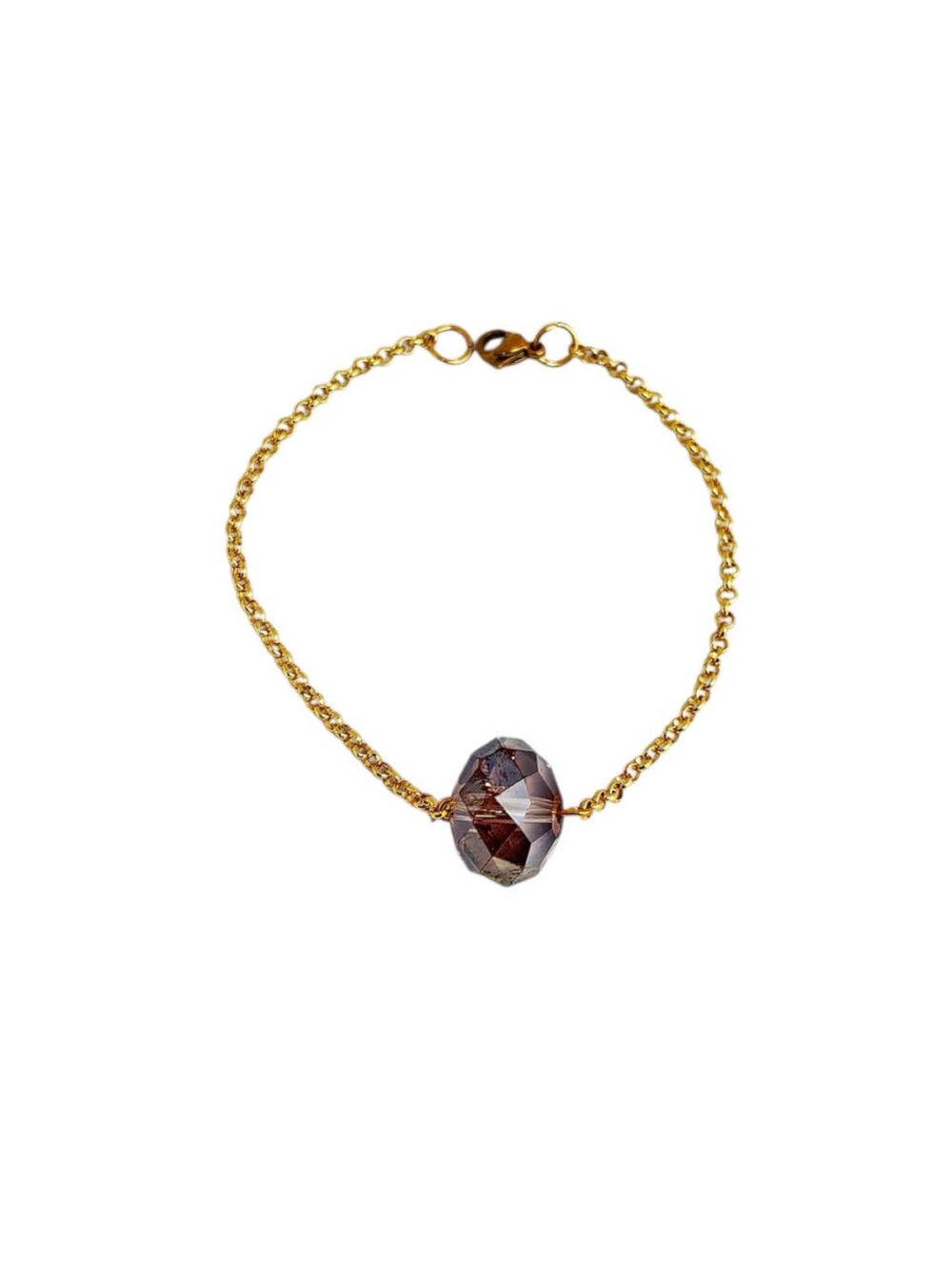 Χειροποιήτο βραχιόλι απο οικολογικό ορύχαλκο , επιχρυσωμένο. Κλασική αλυσίδα ,κρίκος-κρίκος , εχει περαστό ιρίδιζον κρύσταλλο.