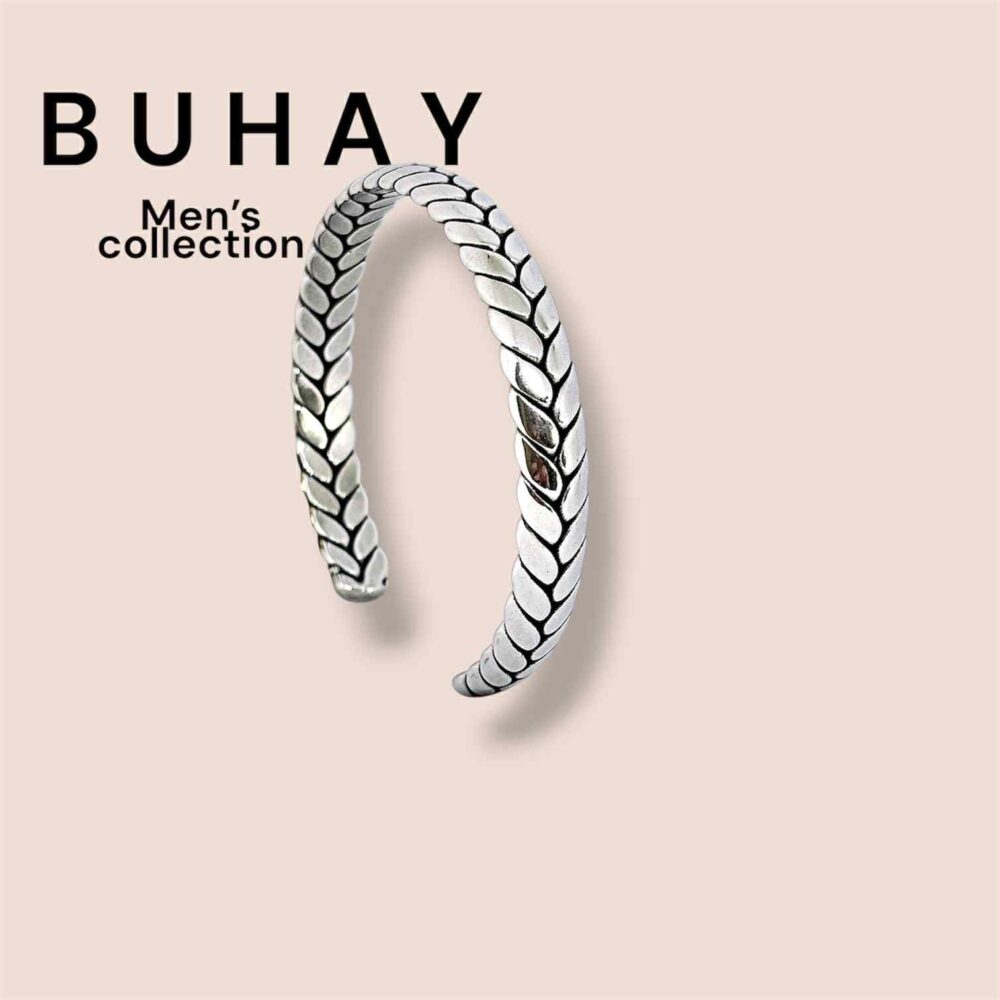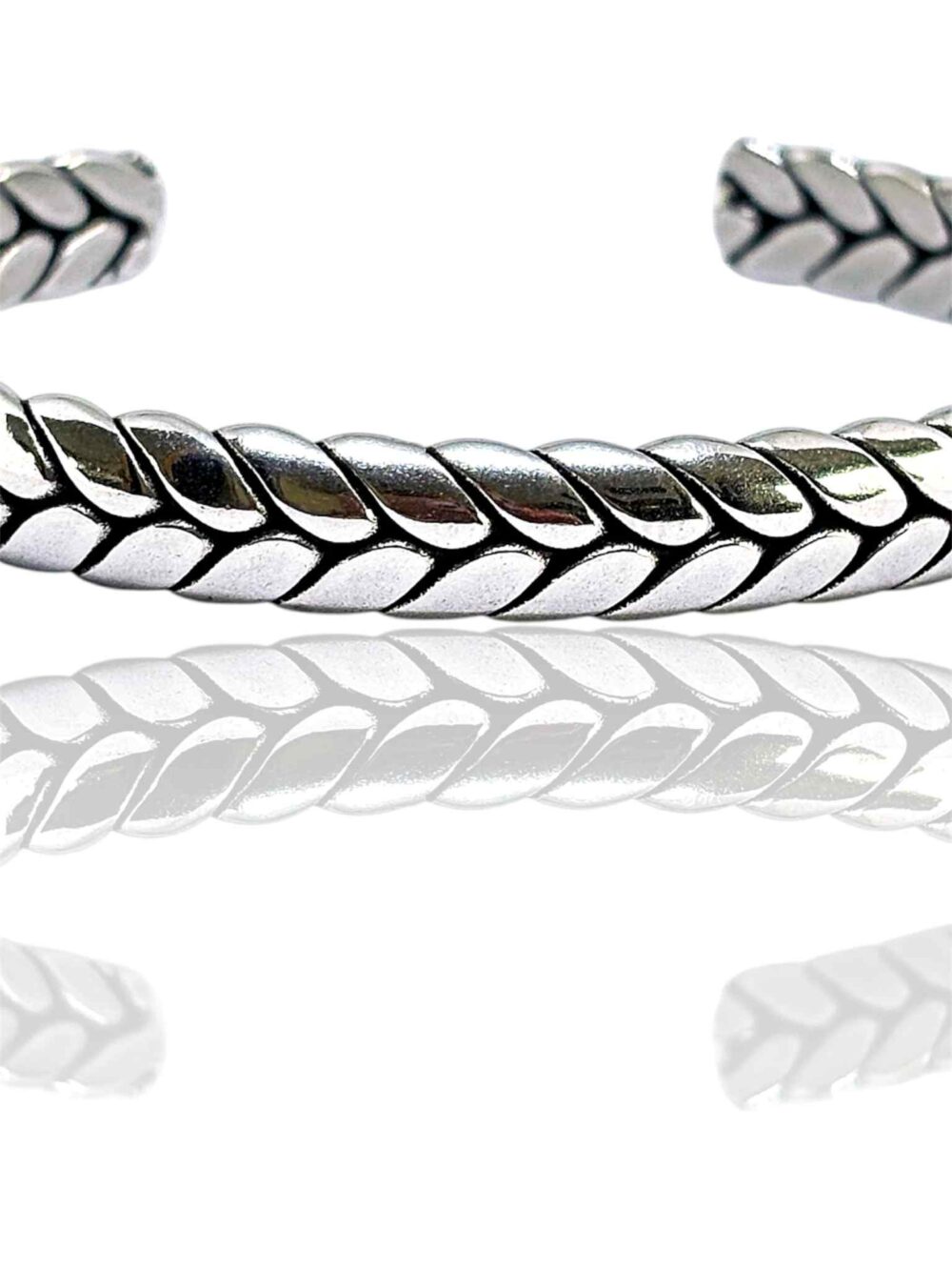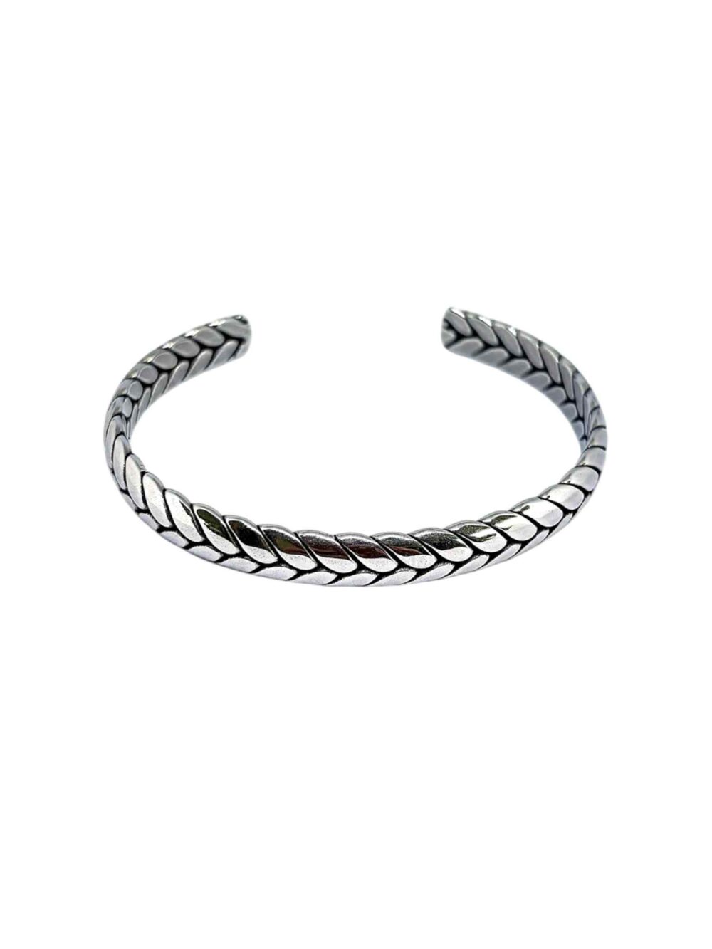 Αντρικό βραχιόλι απο ανοξείδωτο ατσάλι. Χειροπέδα ανοιχτή με σχέδιο πλεξούδας.
