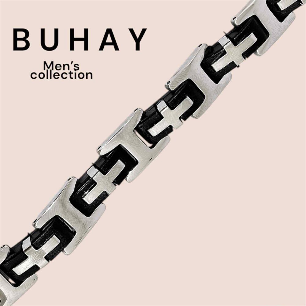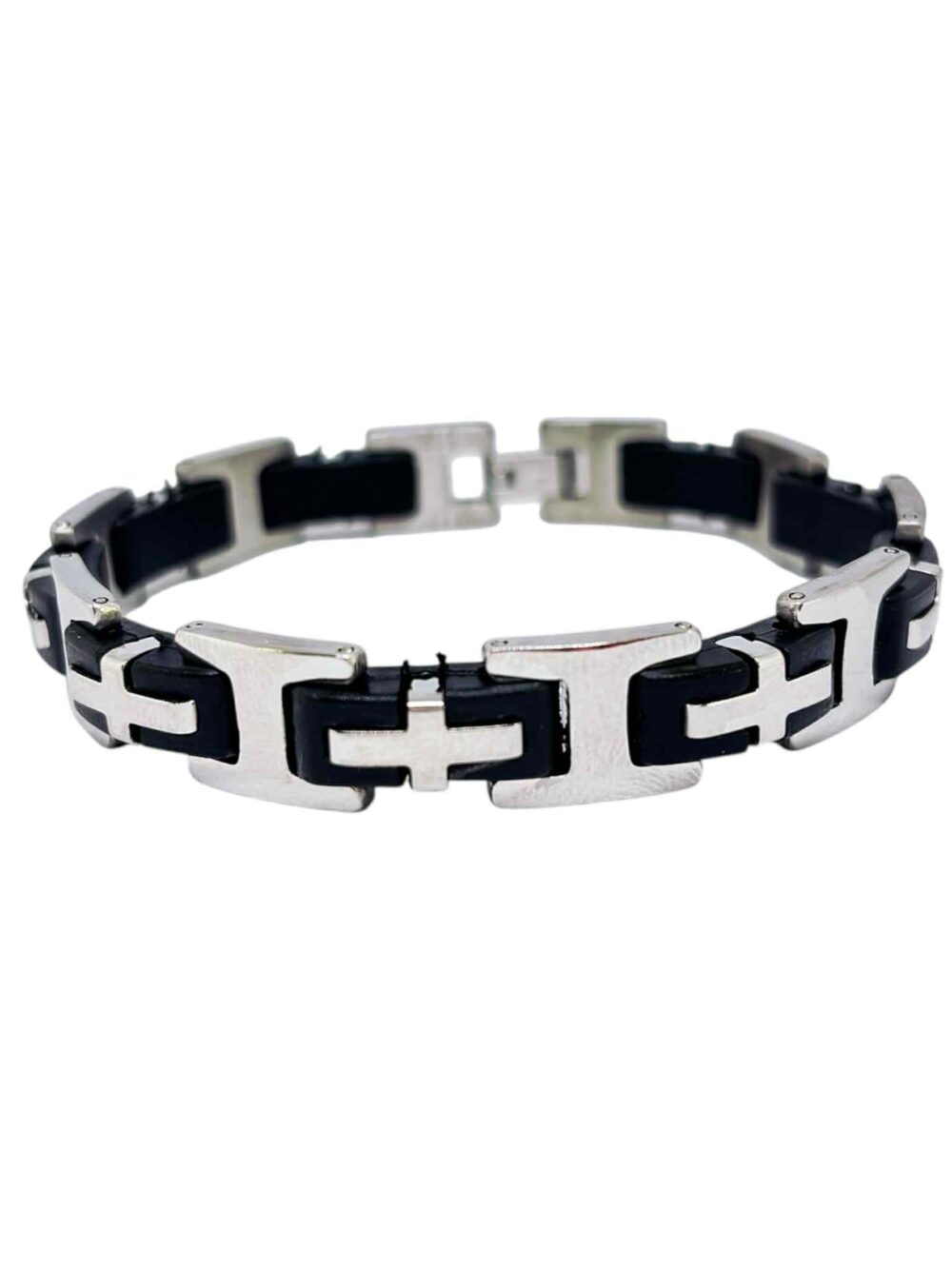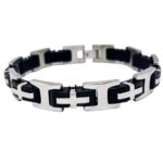 Αντρικό βραχιόλι απο ανοξείδωτο ατσάλι με μάυρο καουτσούκ.