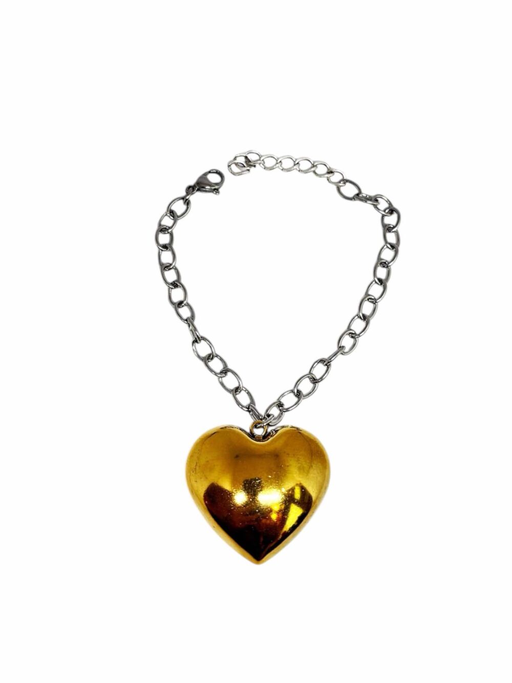 Χειροποιήτο βραχιόλι απο ανοξείδωτο ατσάλι. Δίχρωμο με ασημί αλυσίδα ,κρίκο-κρίκο οβάλ και μπούλ φουσκωτή καρδιά , επιχρυσωμένη.Συνδιάστε το , με το κολιέ Estelle.
