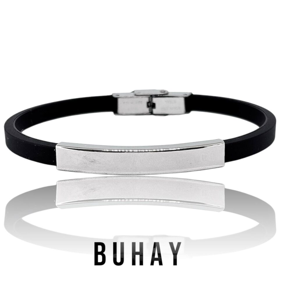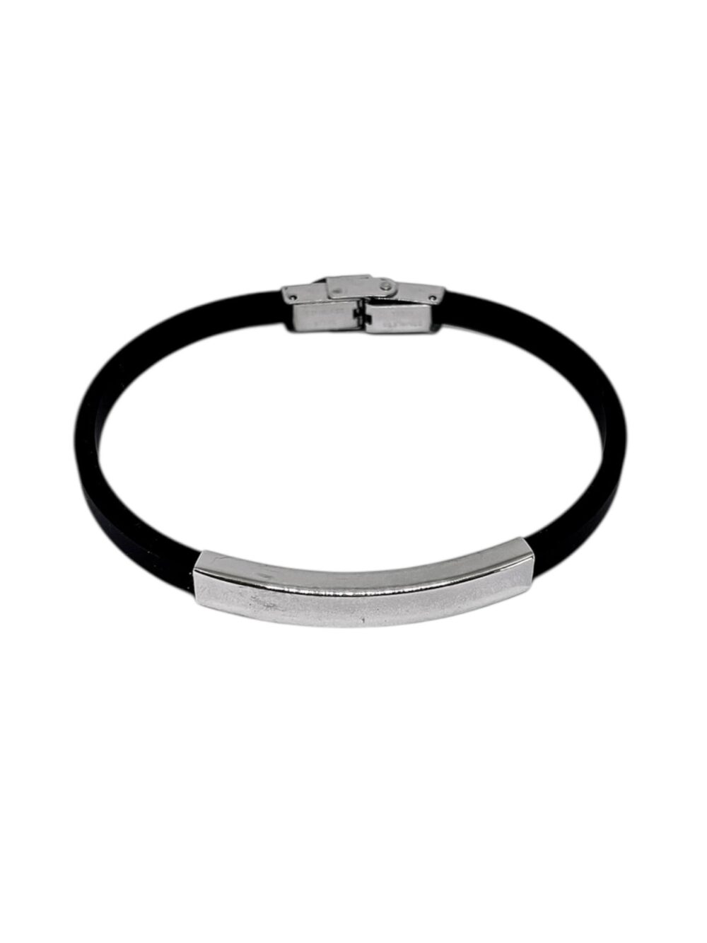 Βραχιόλι αντρικό με κούμπωμα ασφαλείας. Τύπου ταυτότητα απο ανοξείδωτο ατσάλι και μάυρο καουτσούκ.