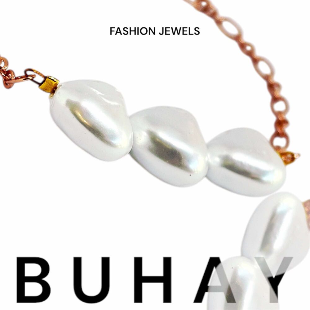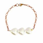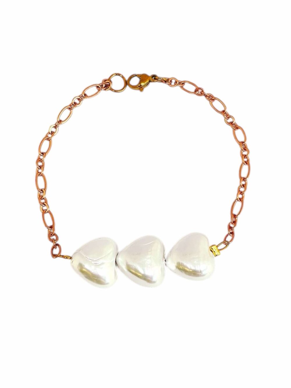 Χειροποιήτο βραχιόλι με πέρλες σε σχήμα καρδιάς. Αλυσίδα απο οικολογικό ορύχαλκο με ρόζ χρύσωμα.