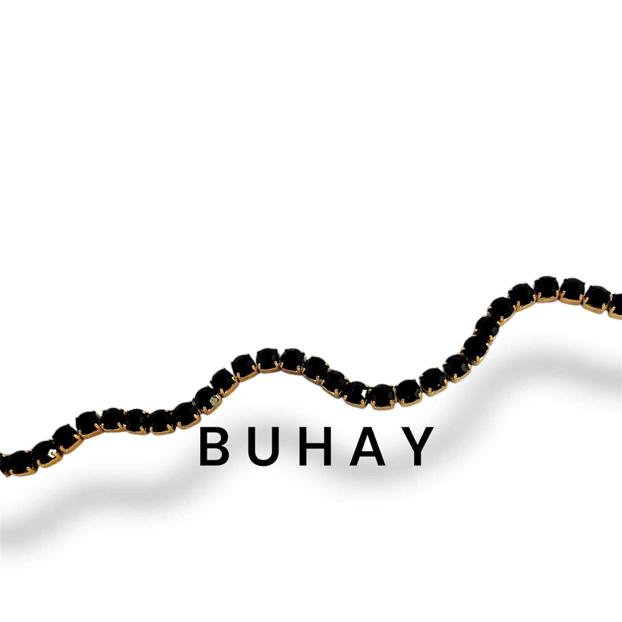 Βραχιόλι απο ανοξείδωτο ατσάλι , επιχρυσωμένο. Ριβιέρα με μάυρα ζιργκόν.