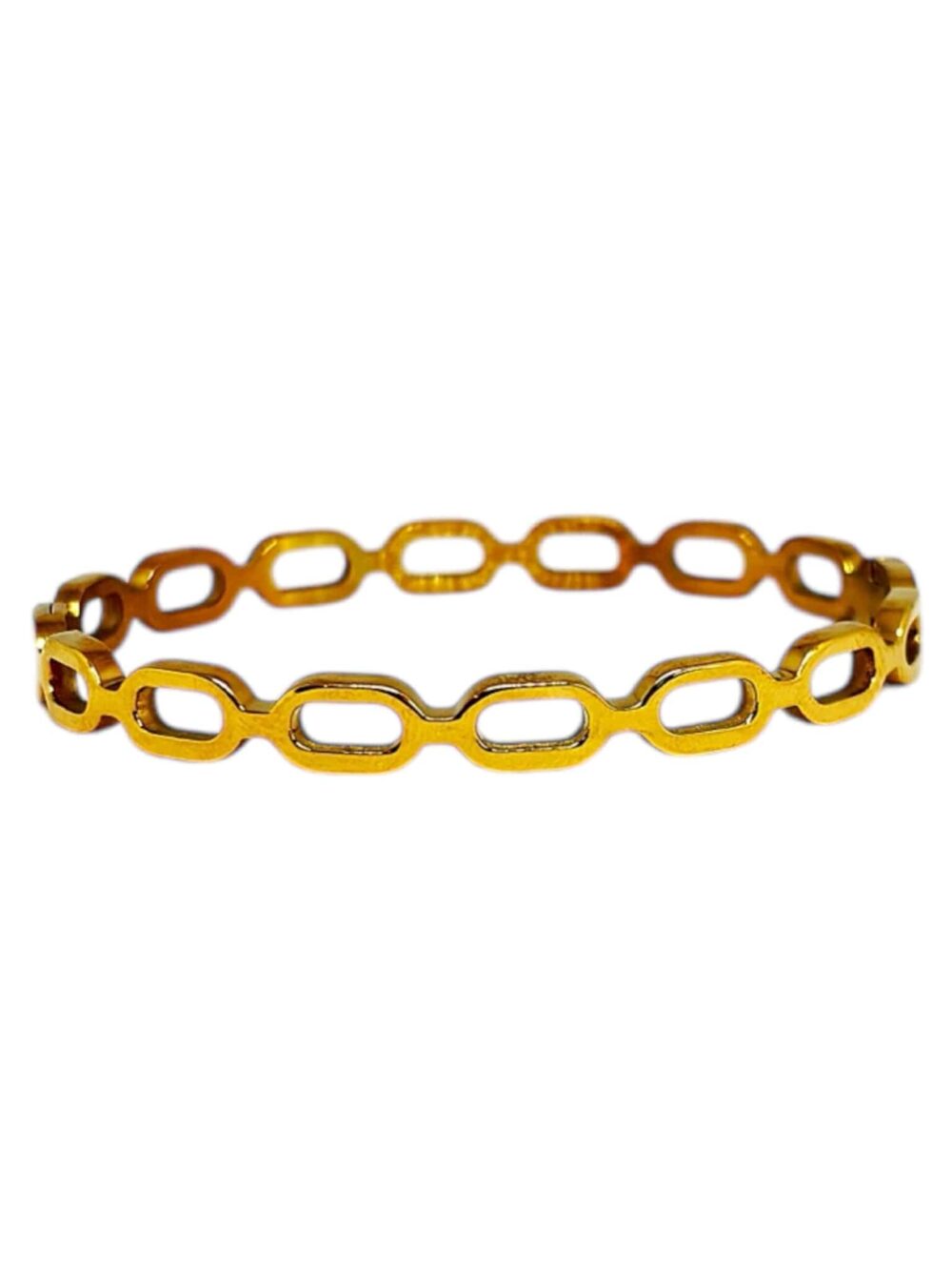 Βραχιόλι απο ανοξείδωτο ατσάλι , επιχρυσωμένο . Χειροπέδα με σχέδιο τύπου αλυσίδα και κούμπωμα ασφαλείας.