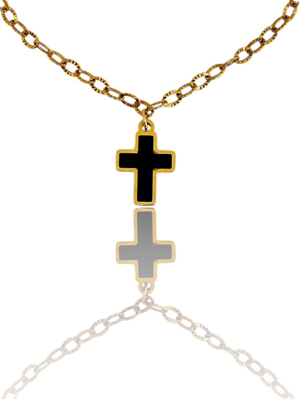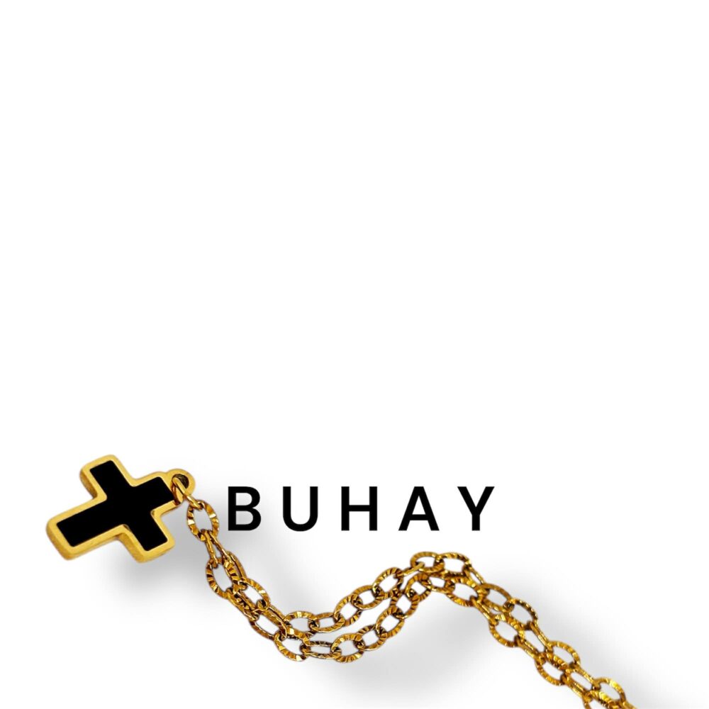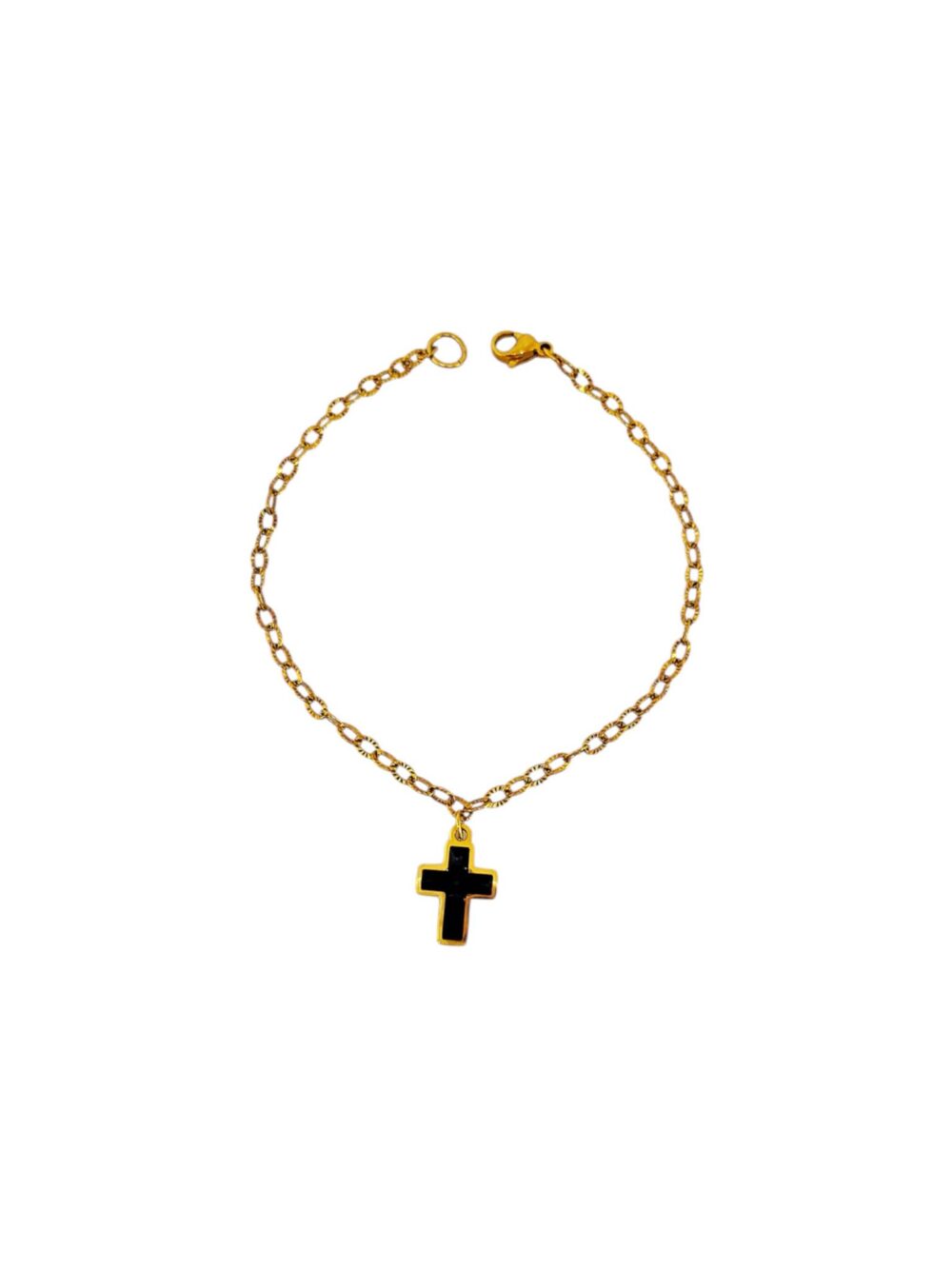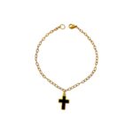 Χειροποιήτο βραχιόλι απο ανοξείδωτο ατσάλι , επιχρυσωμένο. Λεπτή αλυσίδα που κρέμεται σταυρός με μάυρο σμάλτο. Ένα κομμάτι που συνδιάζει το minimal με το symbolic . Ιδανικό για charm bracelet.