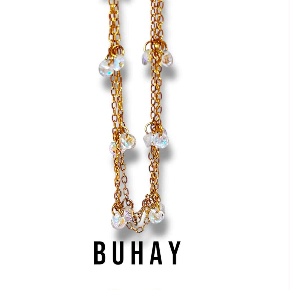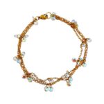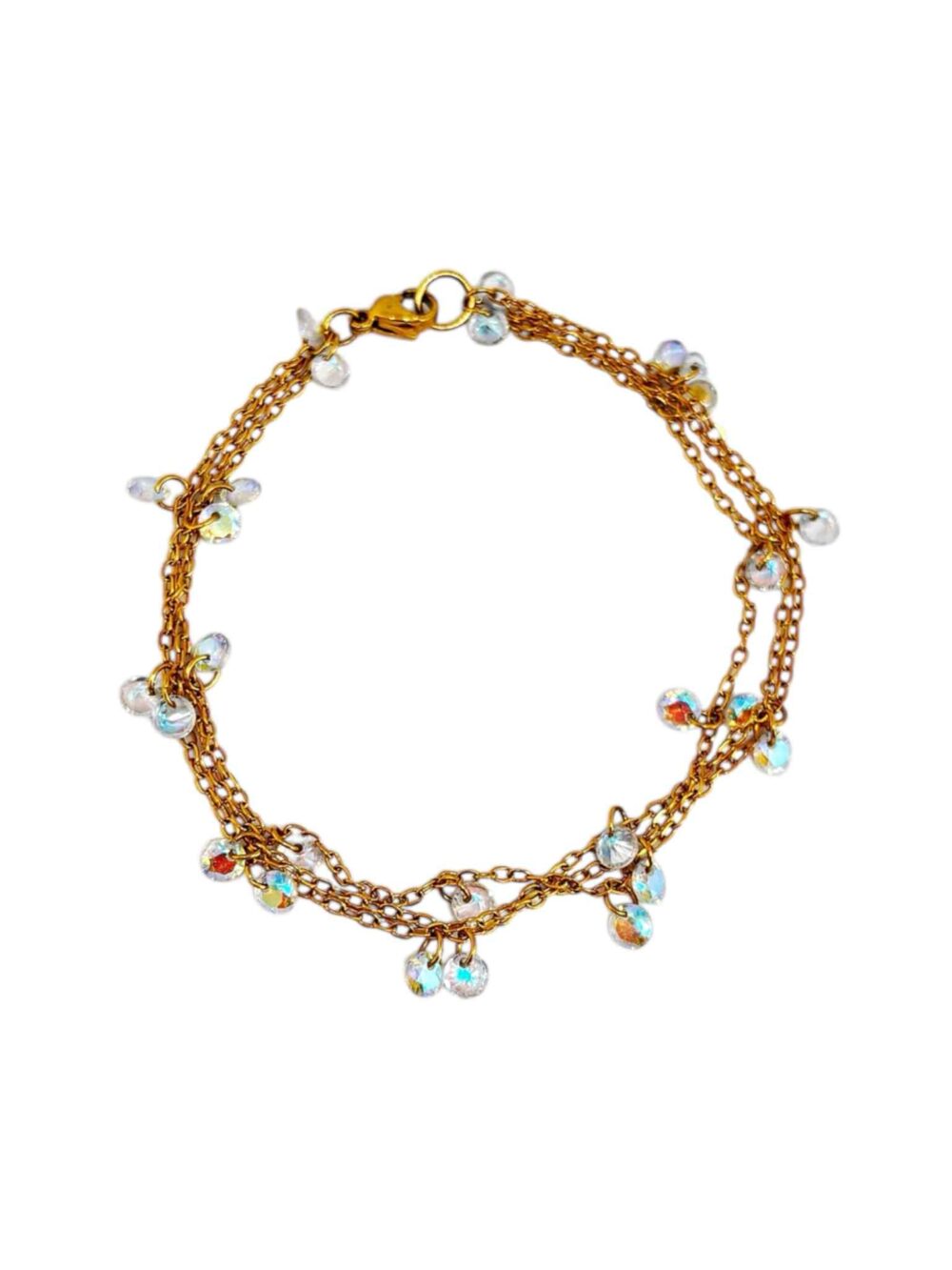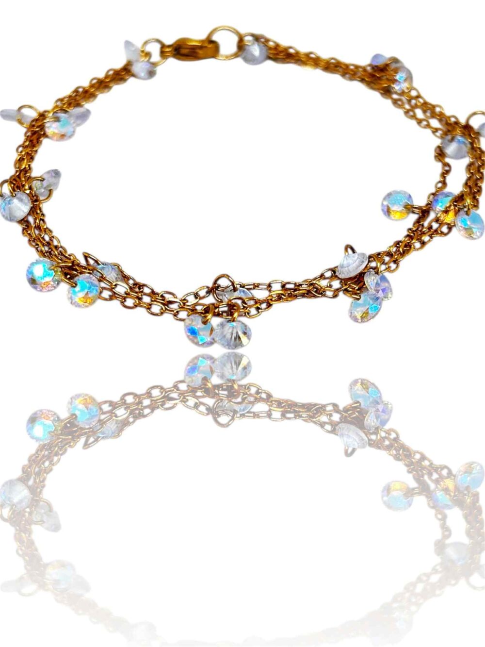 Χειροποιήτο βραχιόλιαπο ανοξείδωτο ατσάλι, επιχρυσωμένο. Κλασική λεπτή , τριπλή αλυσίδα με κρεμαστά ιριδίζον ζιργκόν.