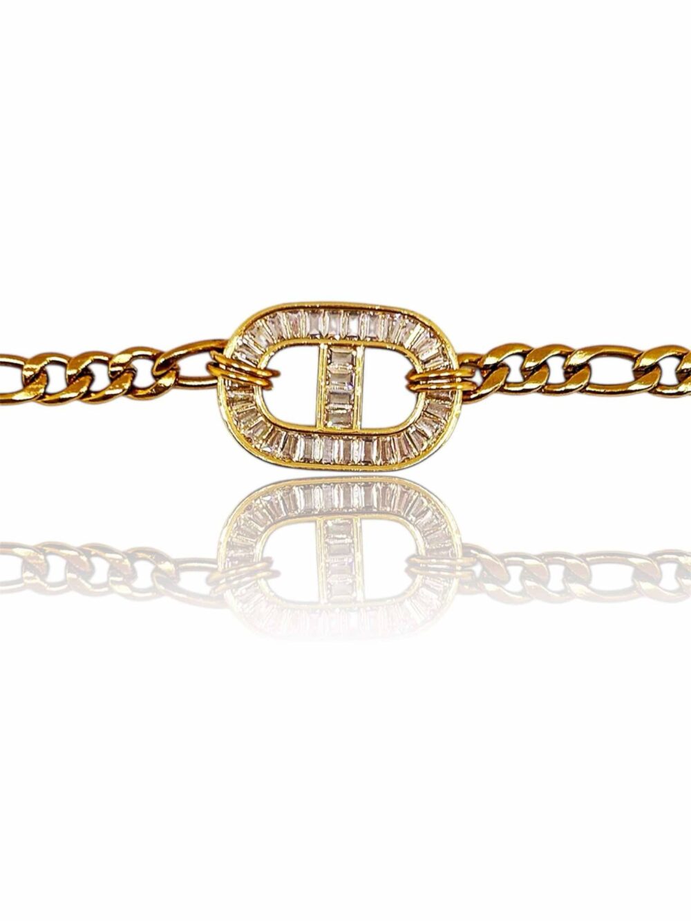 Χειροποιήτο βραχιόλι με καδένα απο ανοξείδωτο ατσάλι , στο κέντρο έχει εντυπωσιάκο μοτίφ με παγιέτες ζιργκόν.