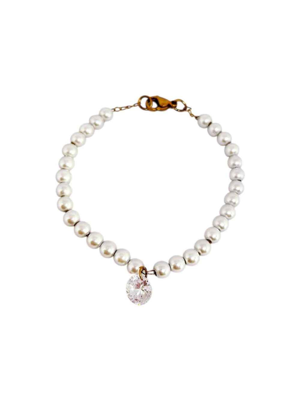 Χειροποήτο βραχιόλι απο ανοξείδωτο ατσάλι , επιχρυσωμένη αλυσίδα με πέρλες και κρέμεται ένα ζιρκόν.
