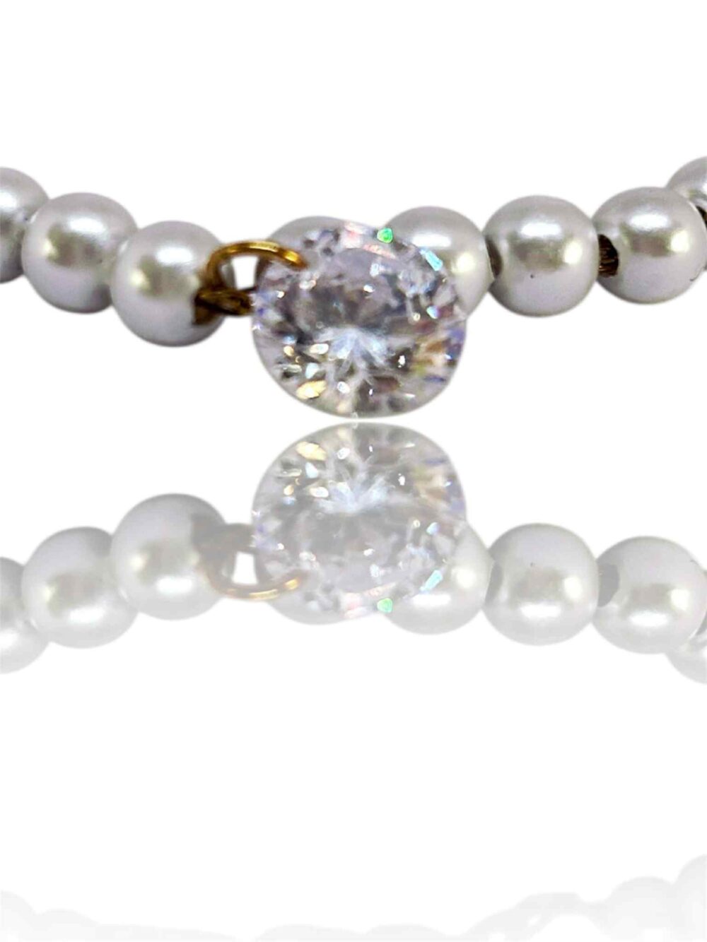 Χειροποήτο βραχιόλι απο ανοξείδωτο ατσάλι , επιχρυσωμένη αλυσίδα με πέρλες και κρέμεται ένα ζιρκόν