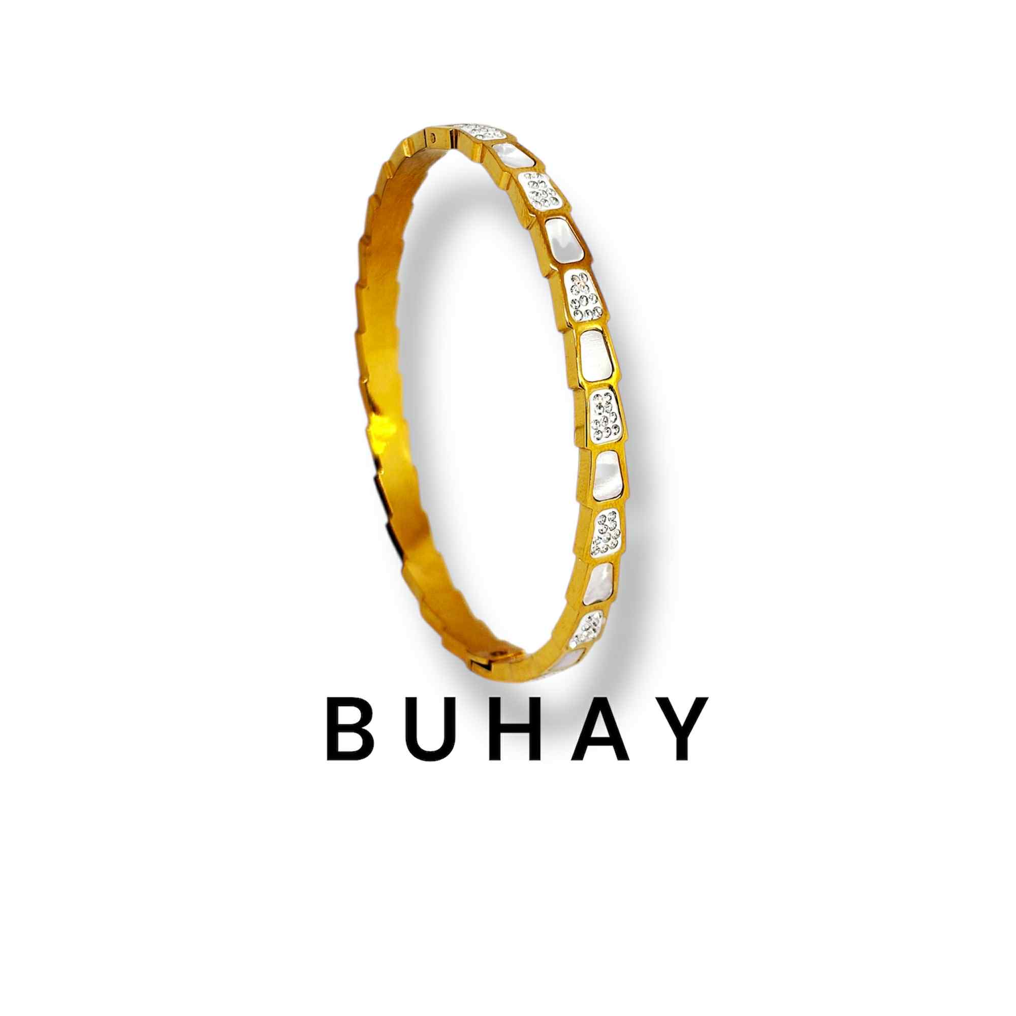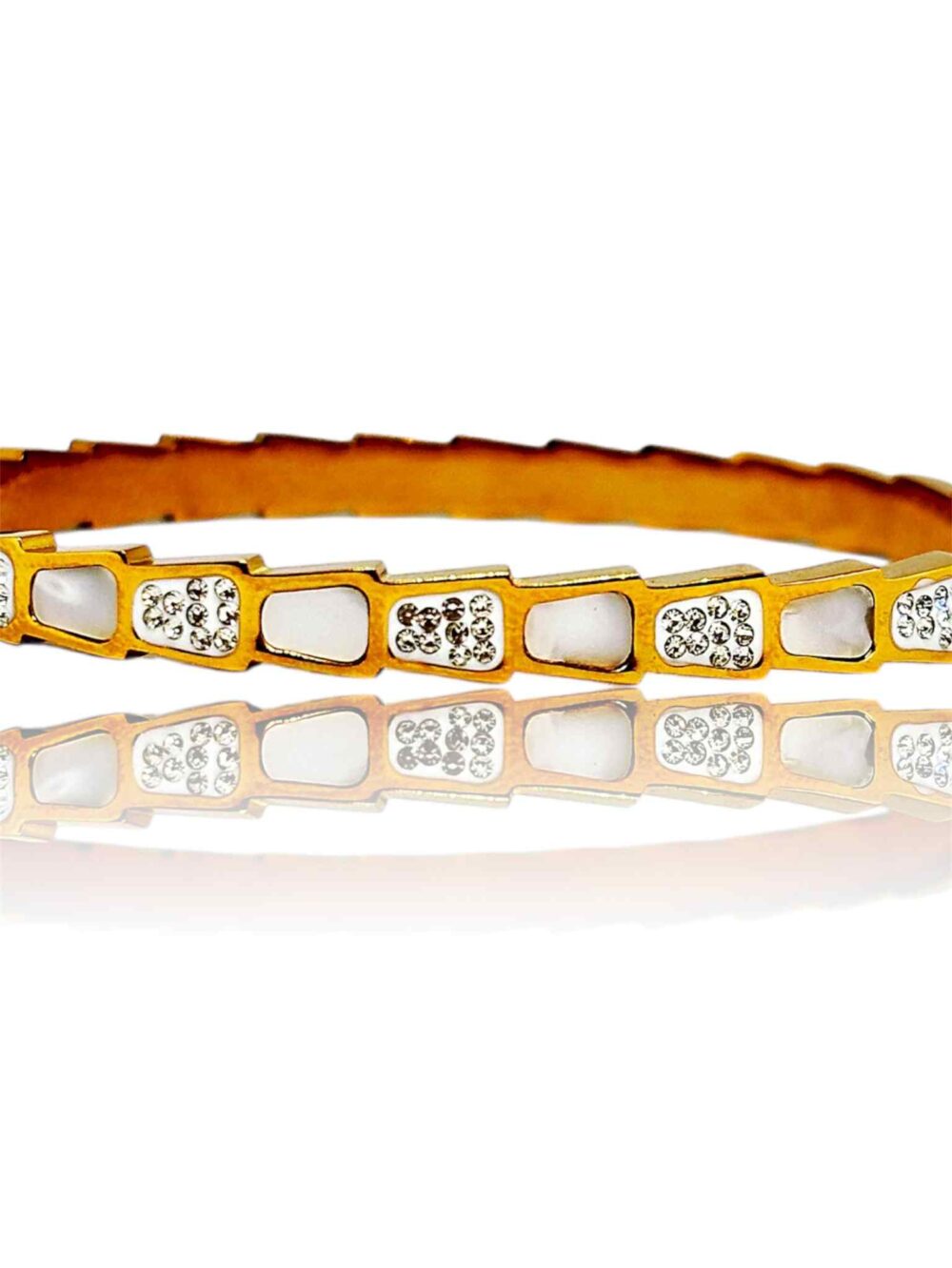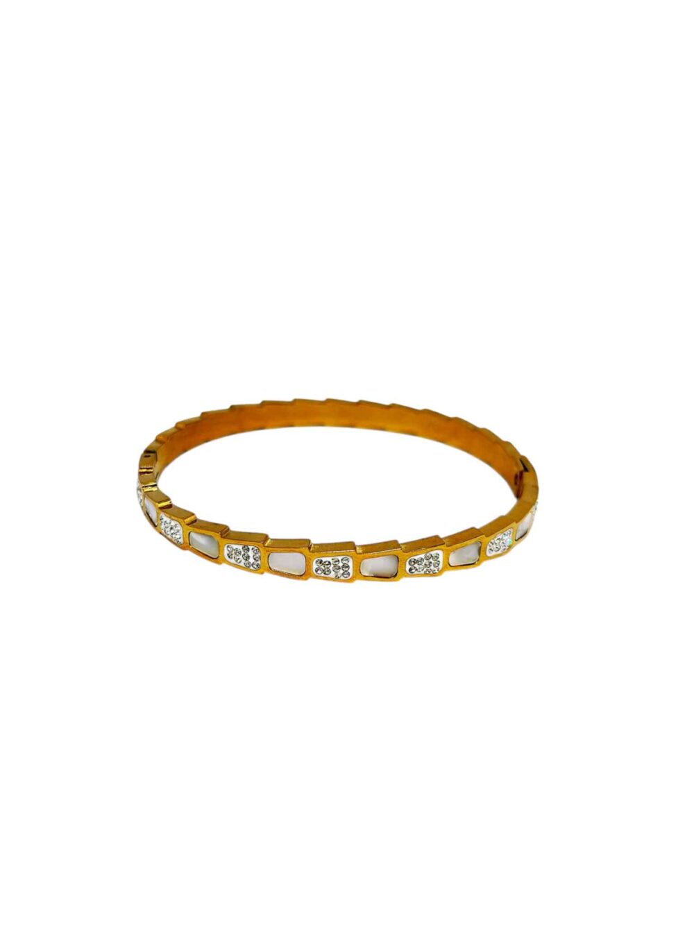 Βραχιόλι απο ανοξείδωτο ατσάλι , επιχρυσωμένο. Χειροπέδα με ζιργκόν και φίλντισι.