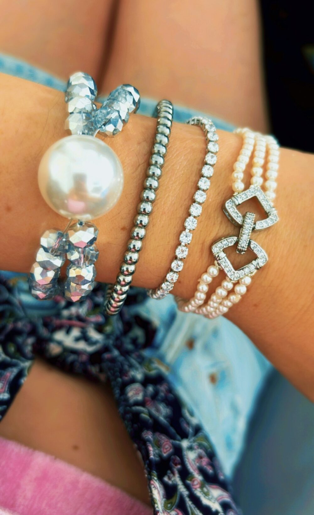 Χειροποιητο βραχιολι με ορυκτό τιρκουαζ , μαργαριτάρι και κοραλι.