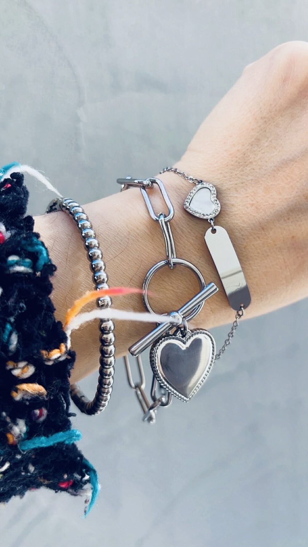 Χειροποιήτο βραχιολάκι , απο ανοξείδωτο ατσάλι νικελωμένο. κλασική καδένα , κρέμονται καρδούλες ροζ και ενα ζιργκόν. Φάρδος καδένας- 0.6 cm
