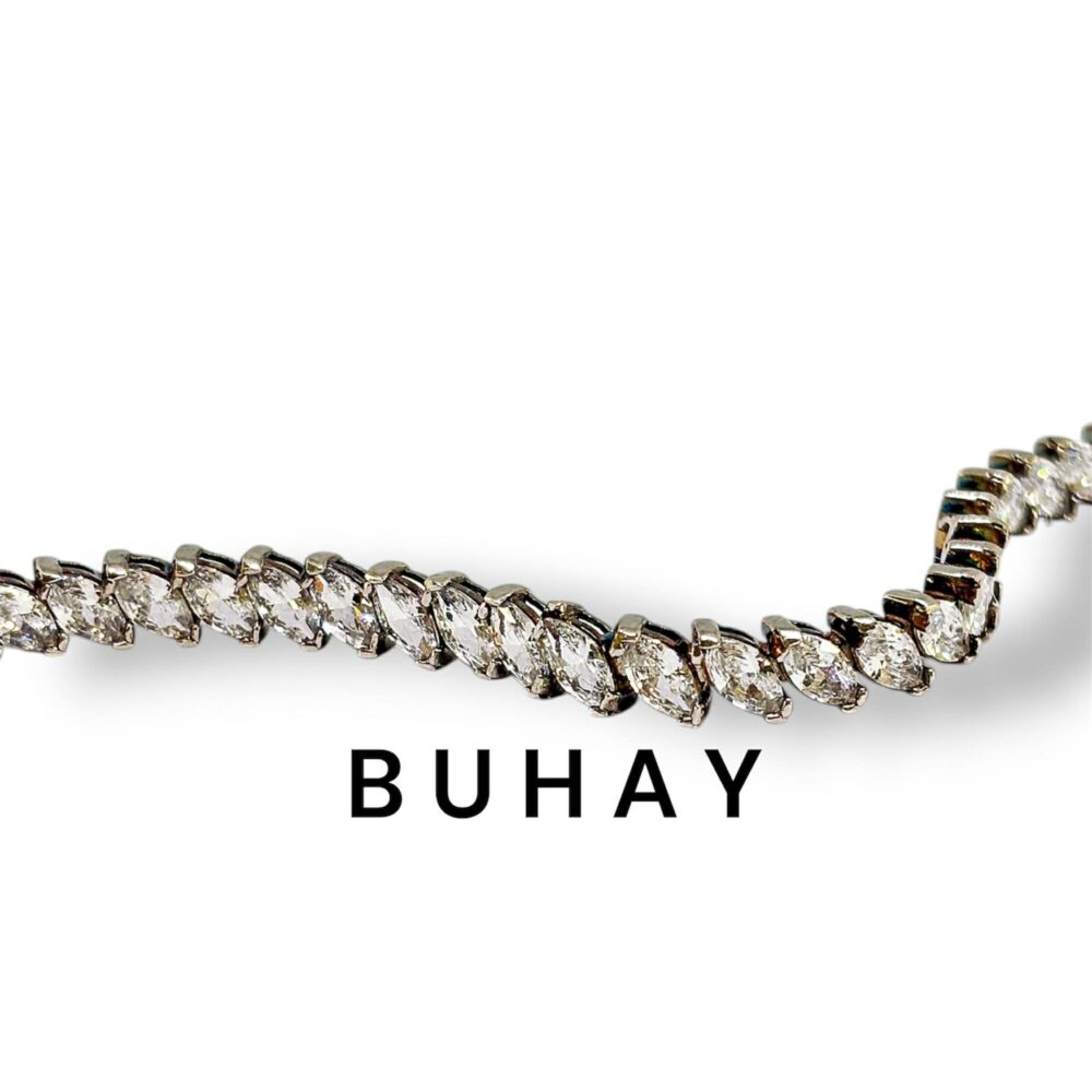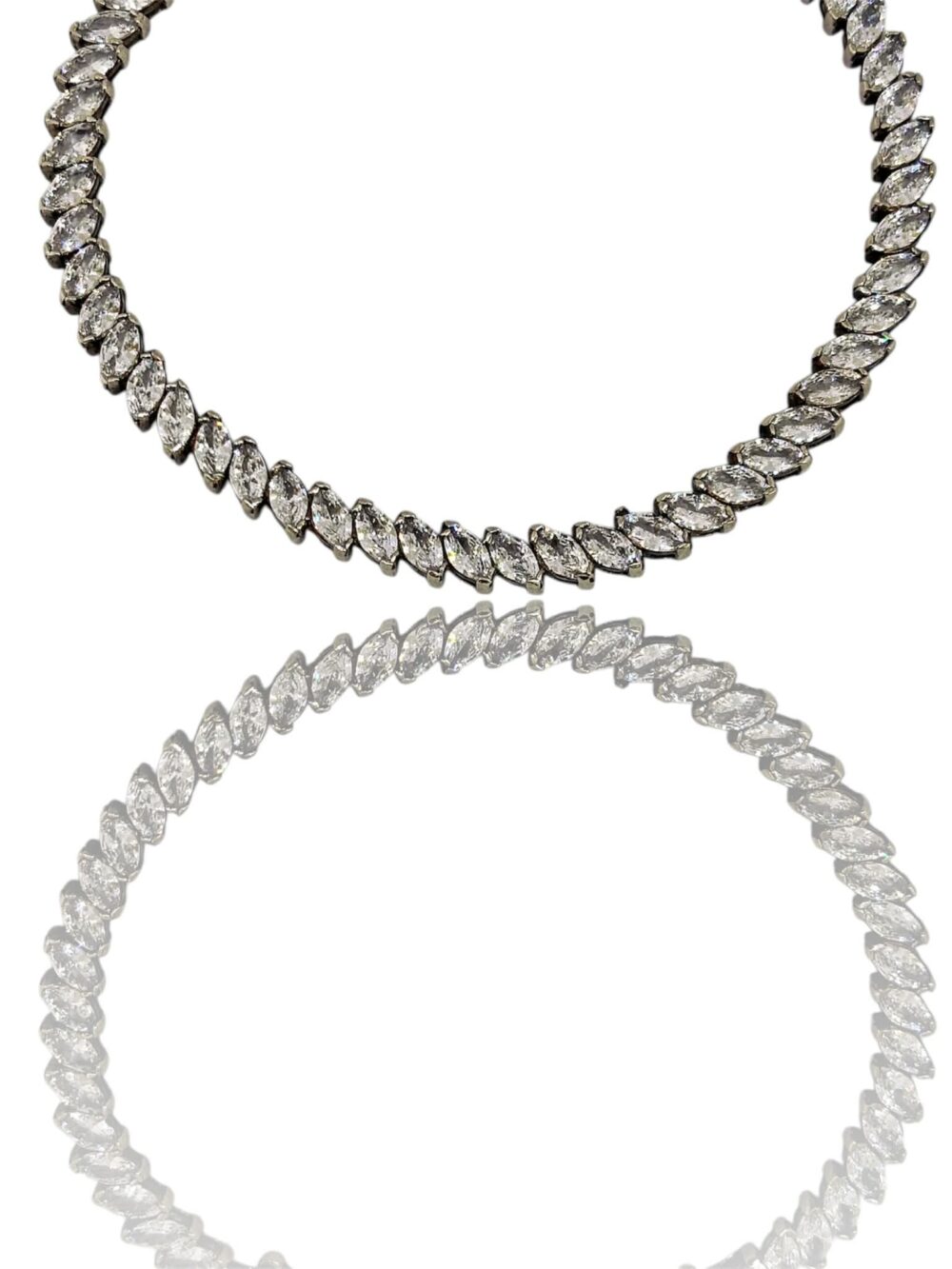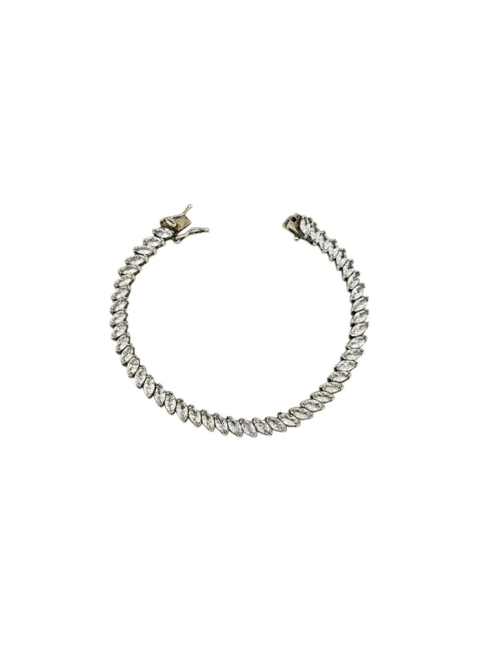 Ένα tennis bracelet (ριβιέρα) που ξεφεύγει από το κλασικό. Τα marquise-cut ζιργκόν τοποθετημένα διαδοχικά δημιουργούν μια ροή που αγκαλιάζει το χέρι με κίνηση και φως. Λαμπερό, διακριτικό και ταυτόχρονα εντυπωσιακό — από το casual look έως το βραδινό.Απο Ασήμι 925 με επιπλατίνωμα και κούμπωμα ασφαλείας.