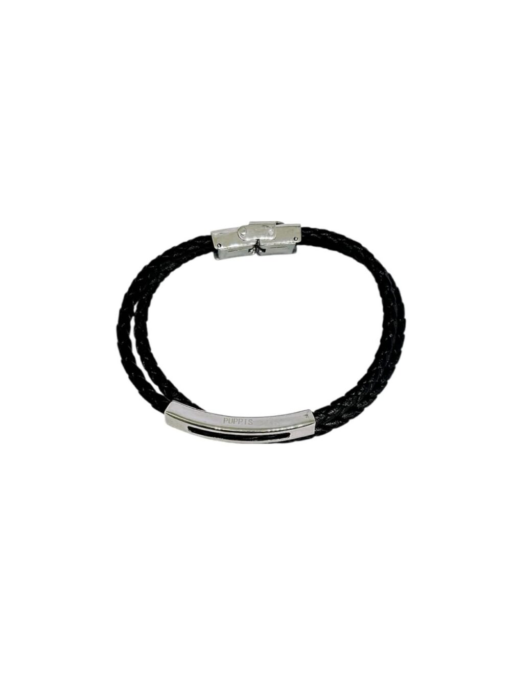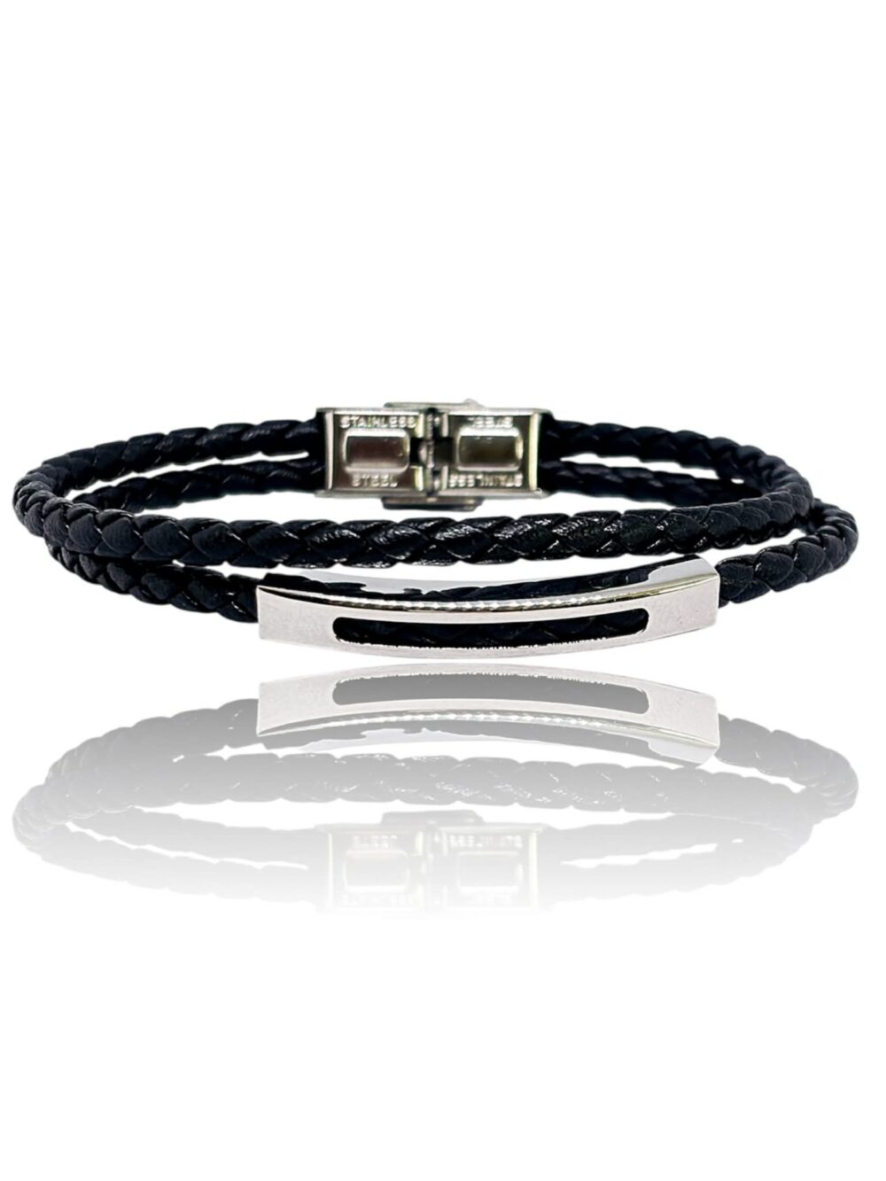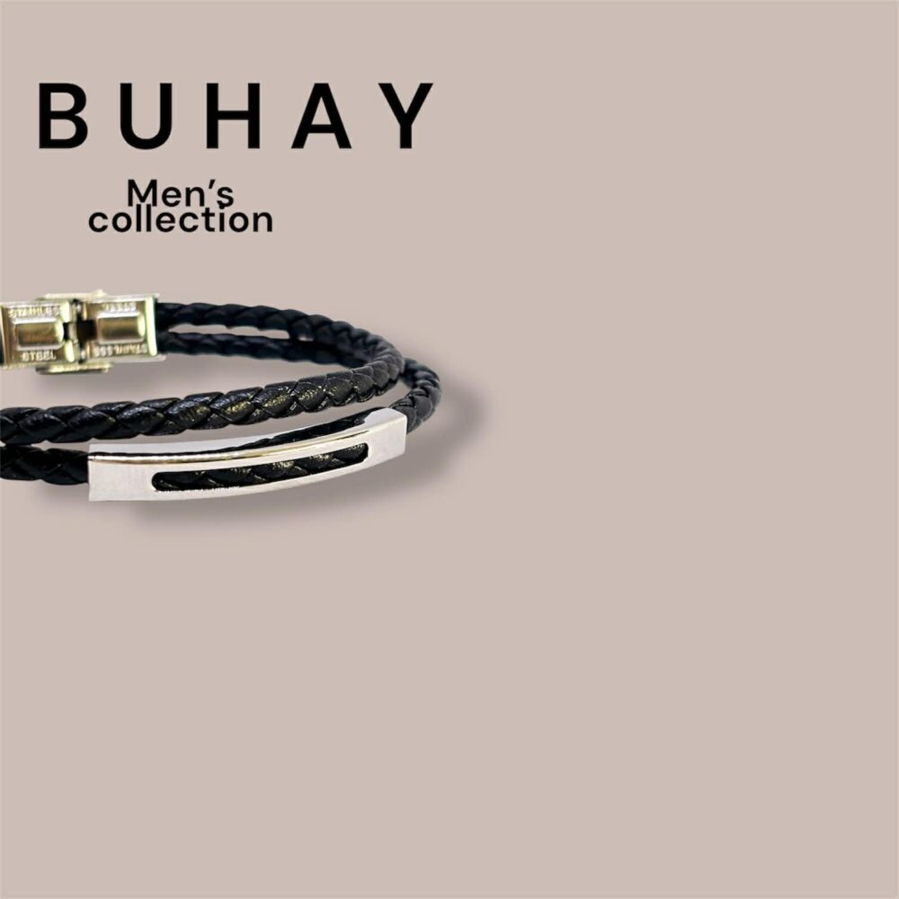 Αντρικό βραχιόλι απο ανοξείδωτο ατσάλι , με διπλό δερμάτινο λουράκι.