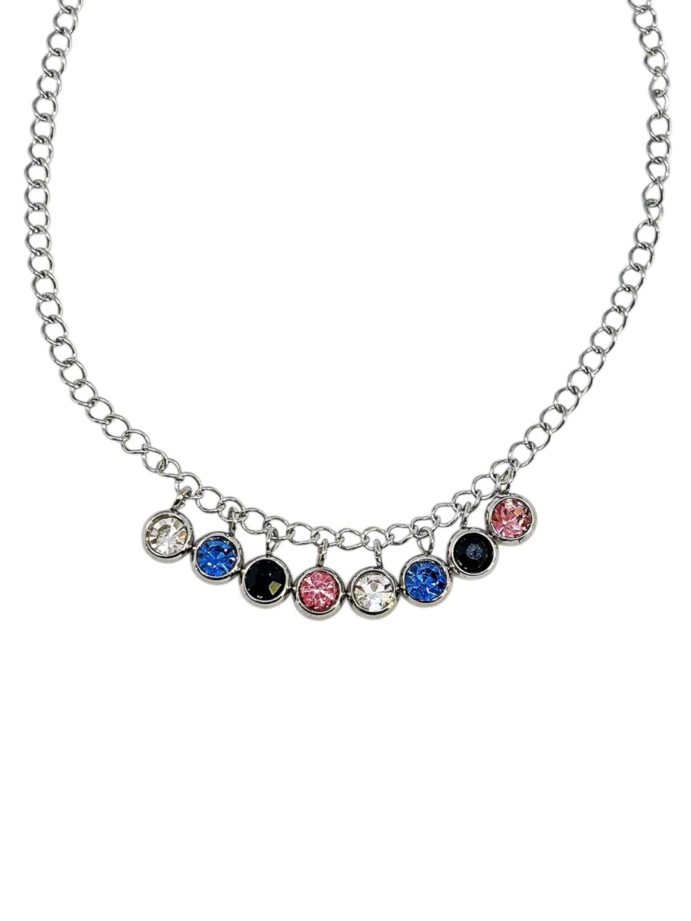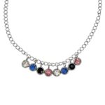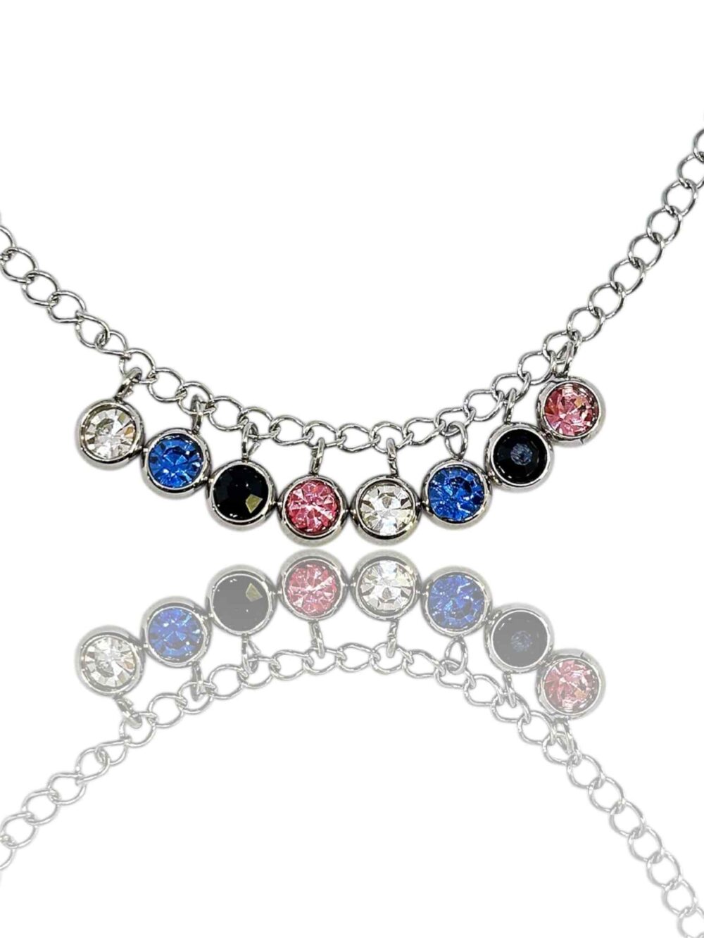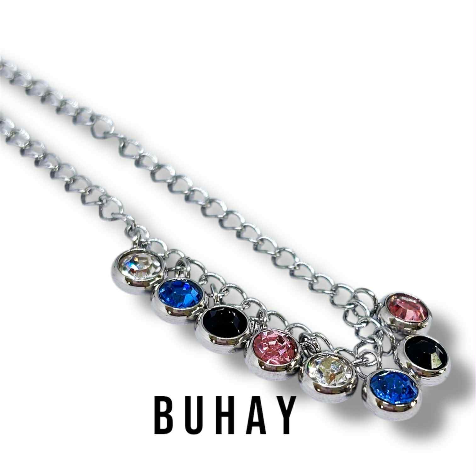 Βραχιόλι ποδιού απο ανοξείδωτο ατσάλι. Κλασική αλυσίδα , κρέμονται πολύχρωμα ζιργκόν.