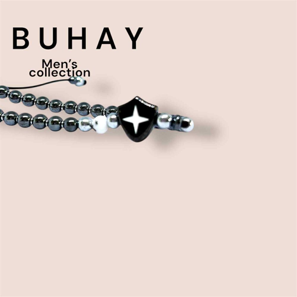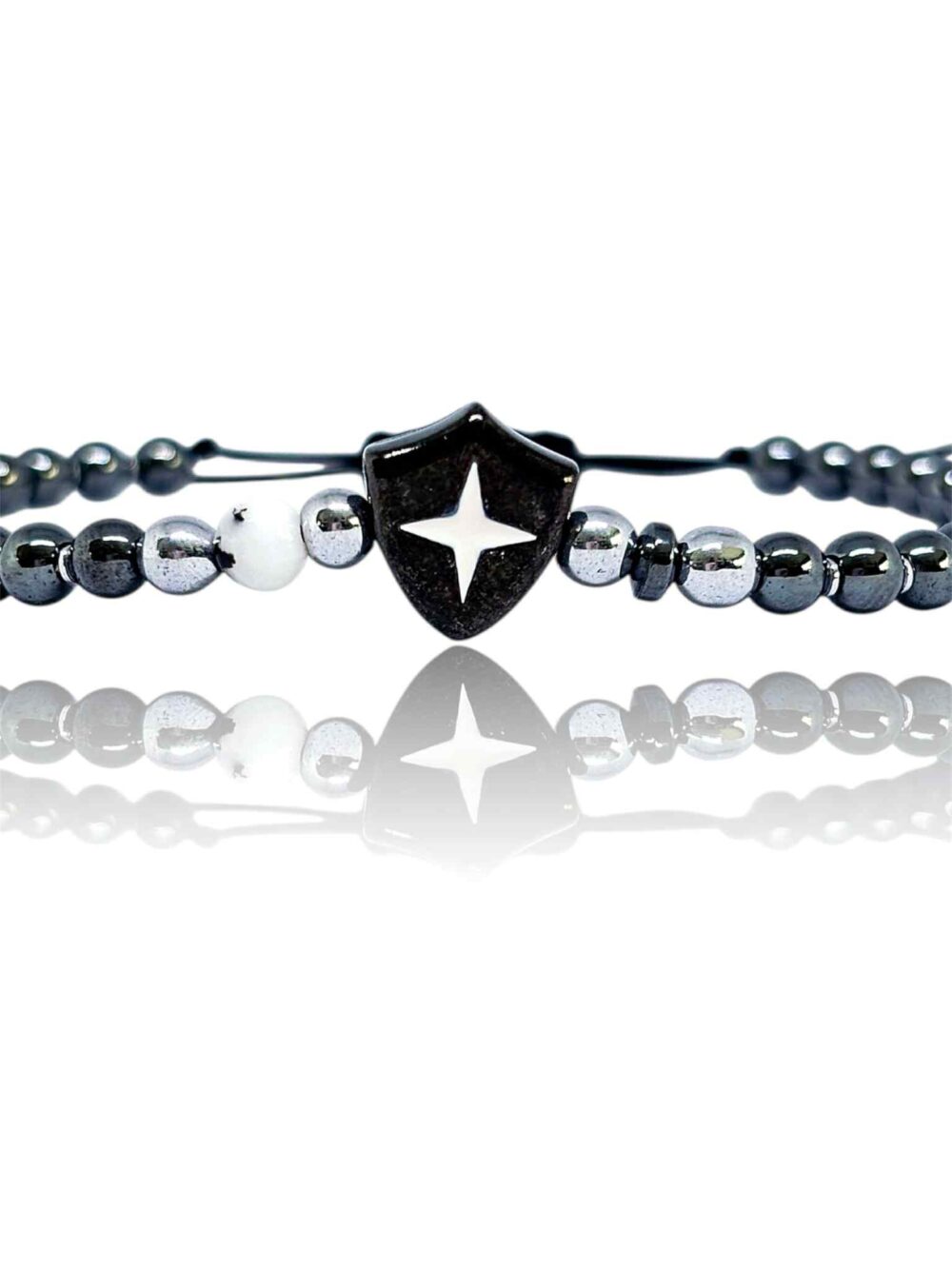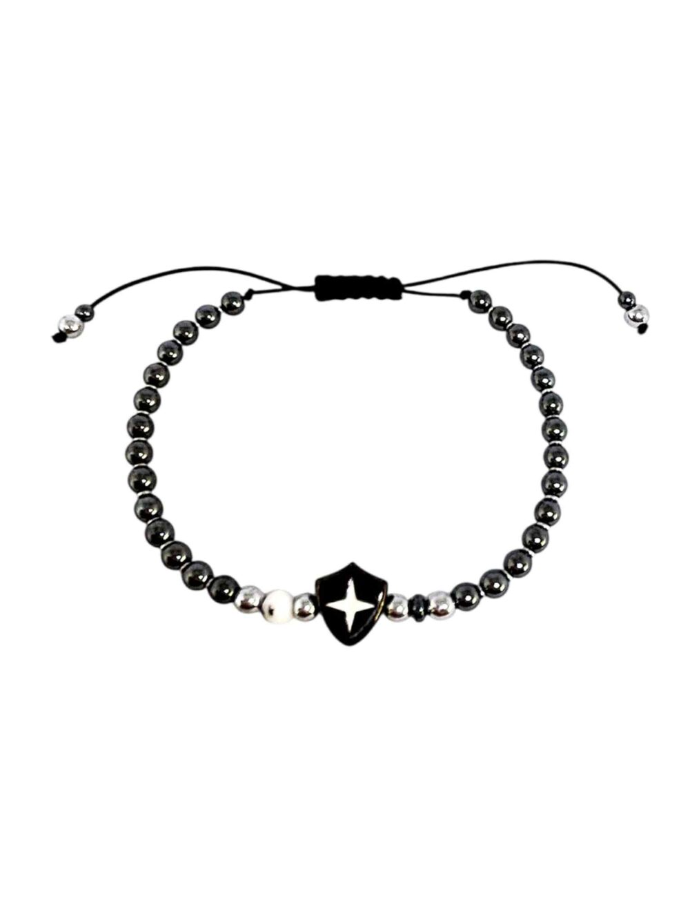 Χειροποιήτο βραχιόλι με αιματίτη και δέσιμο μακραμέ.