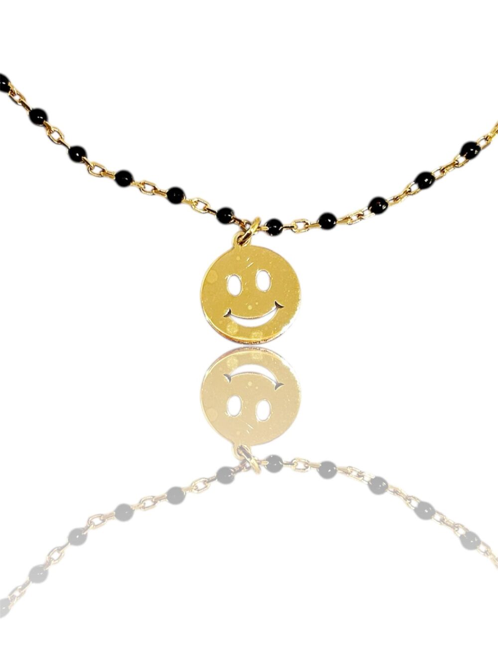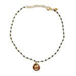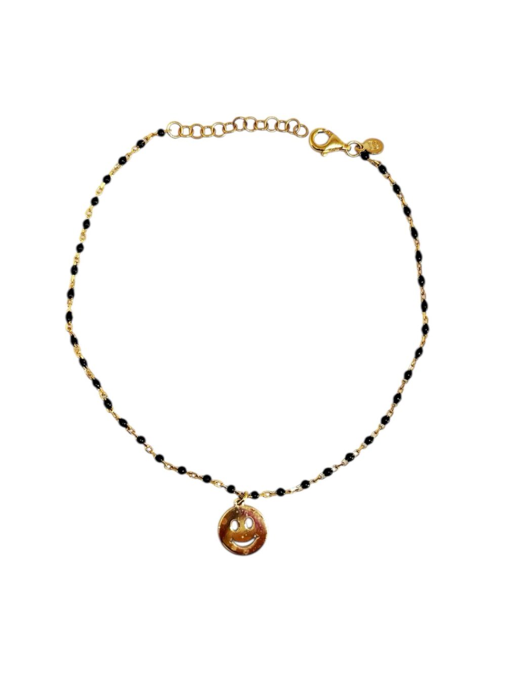 Βραχιόλι ποδιού απο καθαρό ασήμι 925* , επιχρυσωμένο. Αλυσίδου τύπου ροζάριο με μάυρο σμάλτο. Κρέμεται ένα μενταγιόν smiley.