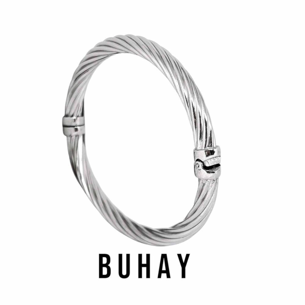 Βραχιόλι απο καθαρό ασήμι 925*. Χειροπέδα με στριφτό σχέδιο και κούμπωμα ασφαλείας.