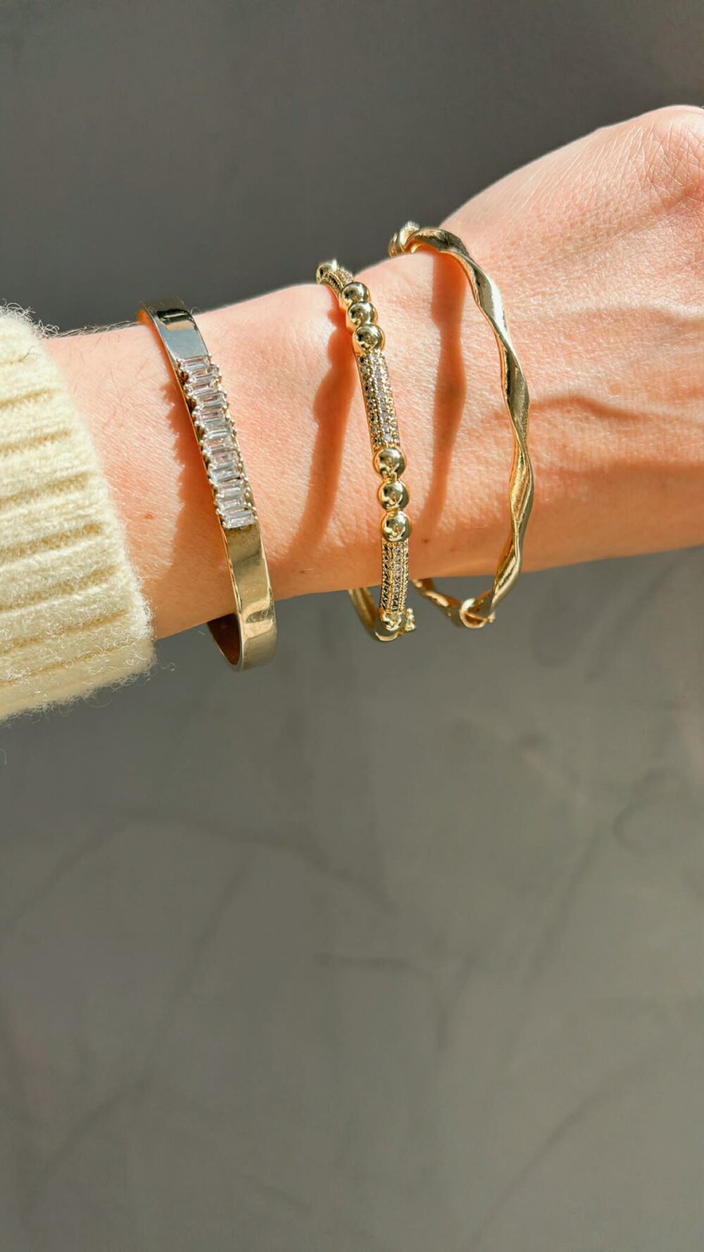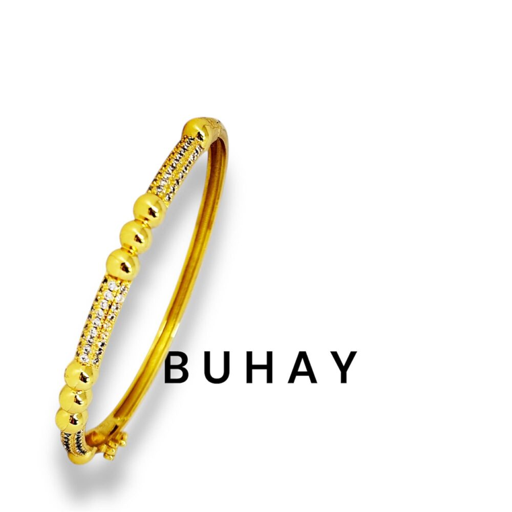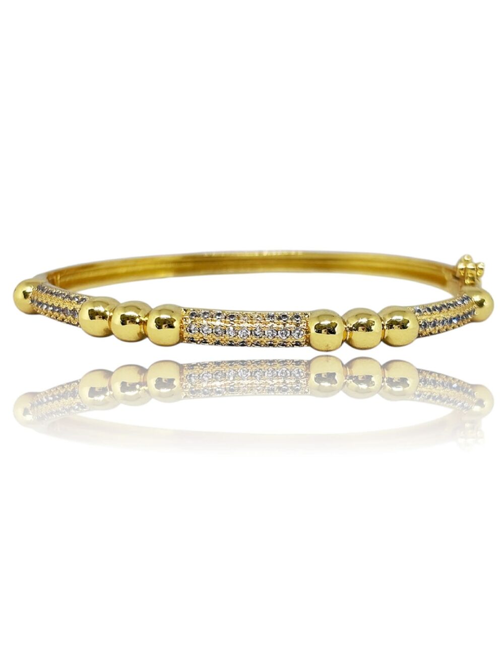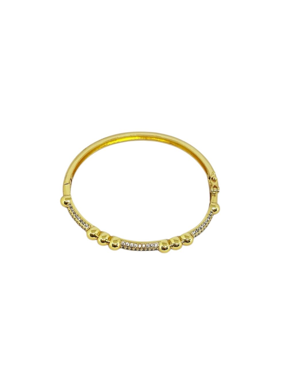 Βραχιόλι απο οικολογικό ορείχαλκο , επιχρυσωμένο. Κλειστή χειροπέδα με ζιργκόν και κούμπωμα ασφαλείας.