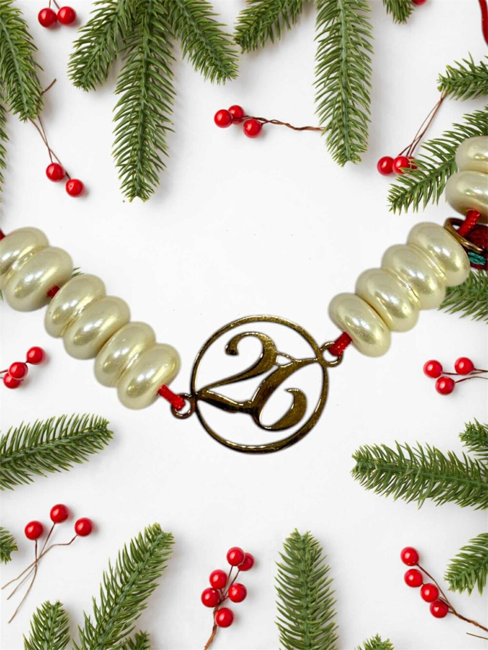 Χειροποιήτο βραχιόλι γούρι 2026, με ατσάλινο 26 και πέρλες.