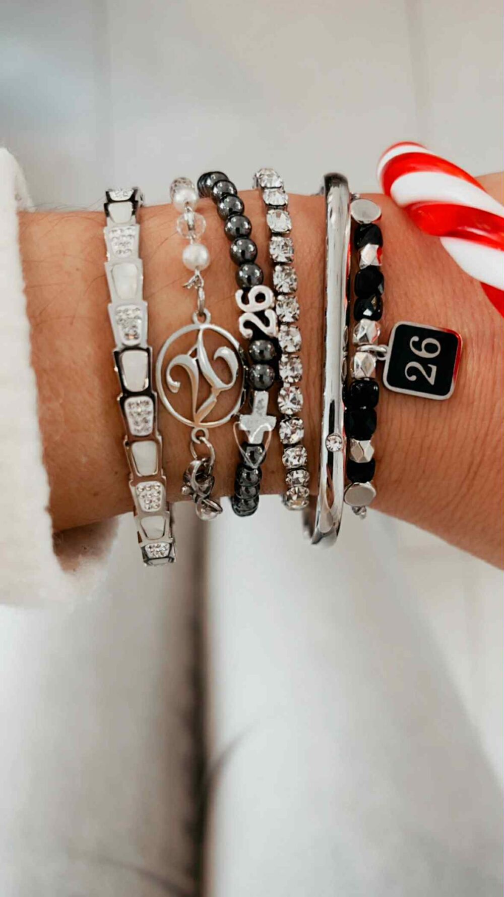 Χειροποιήτο γούρι 2026 βραχιόλι, με μάυρα κρυσταλλάκια και 26 απο ανοξείδωτο ατσάλι.