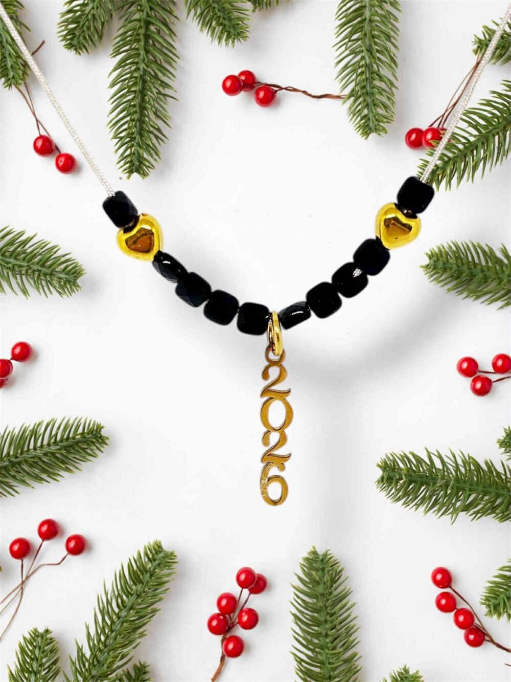 Χειροποιήτο κολιεδάκι γούρι 2026, με κρυσταλλάκια και 26 απο ανοξείδωτο ατσάλι.