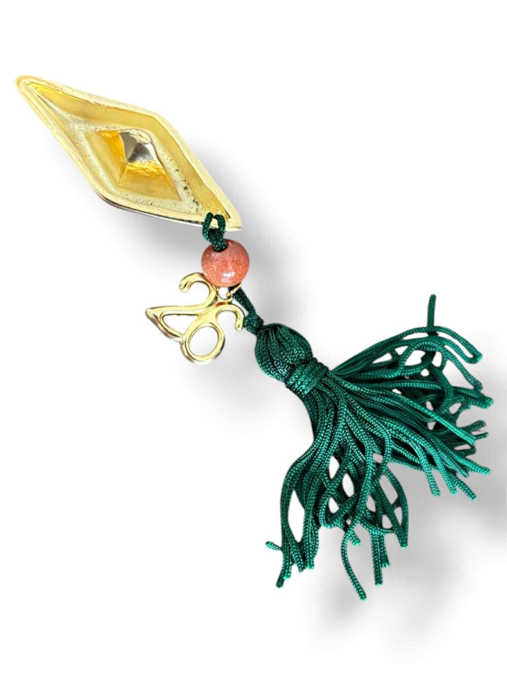 Χειροποιήτο διακοσμητικό γούρι 2026, με επίχρυσο καραβάκι, πράσινη φούντα,με φυσική πέτρα και 26 .