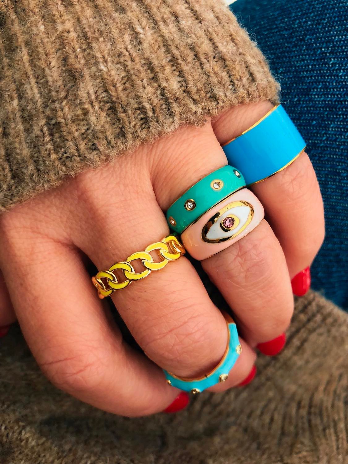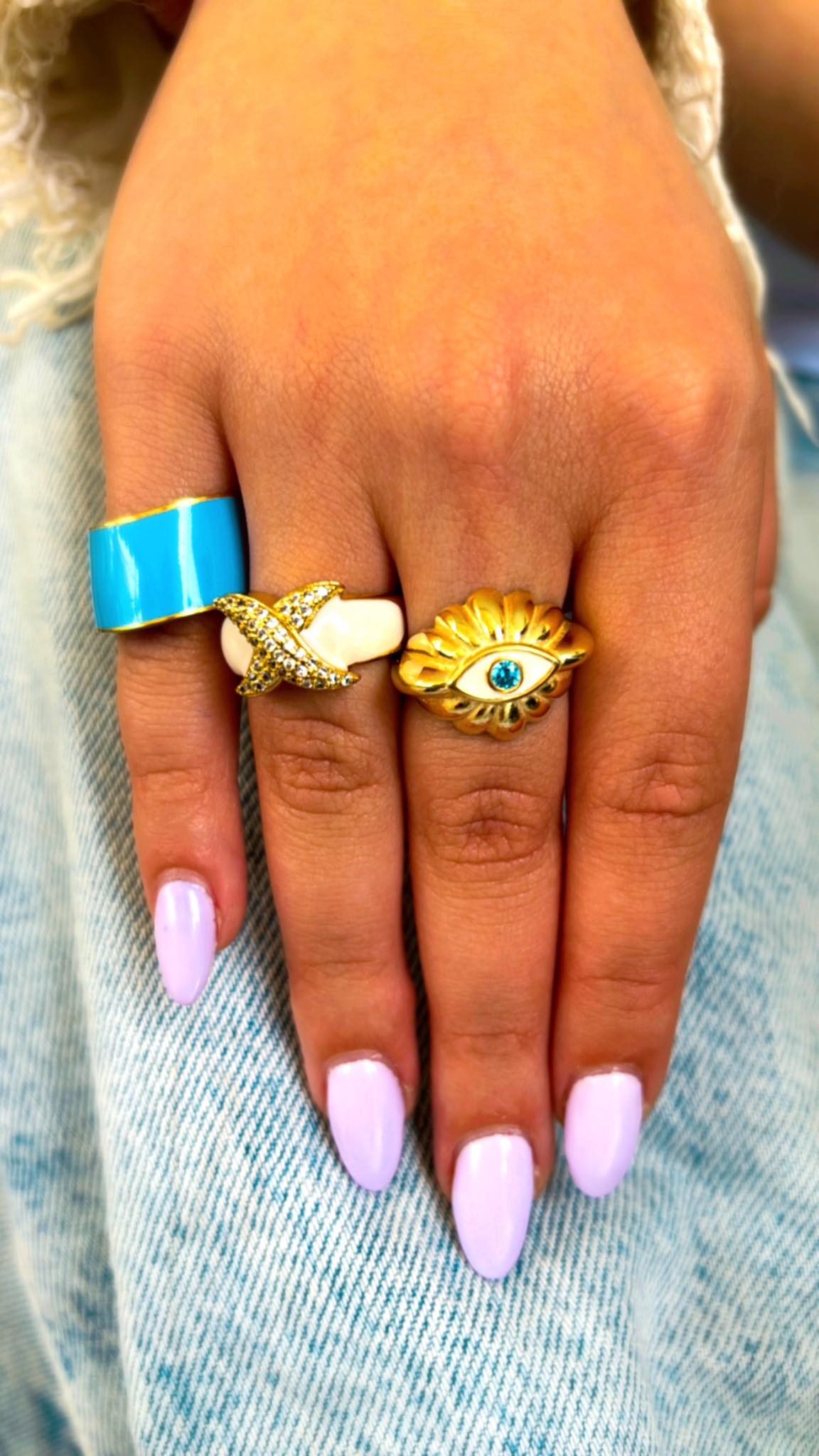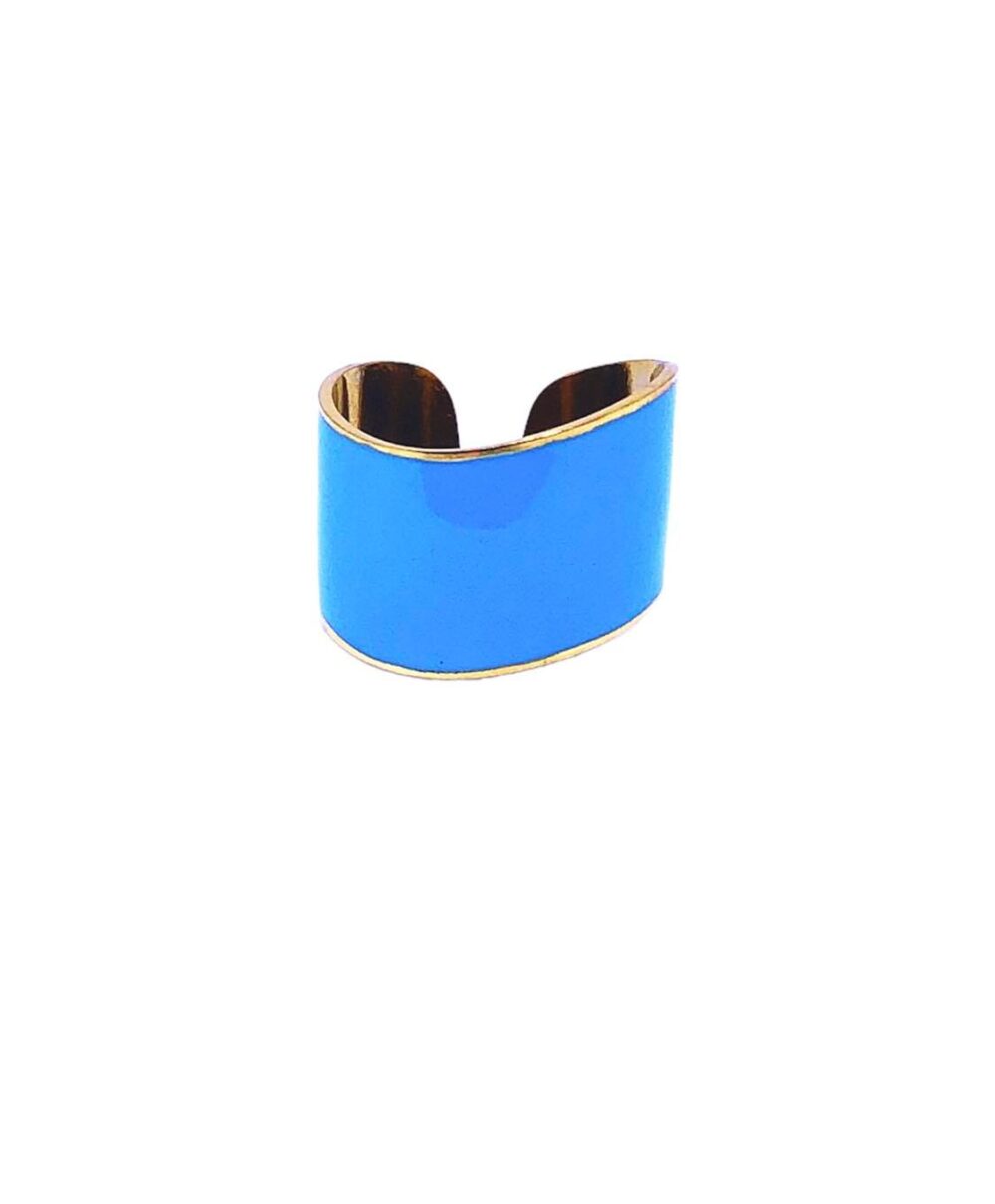 Δαχτυλίδι απο ανοξείδωτο ατσάλι επιχρυσωμένο. Εχει γαλάζιο σμάλτο.