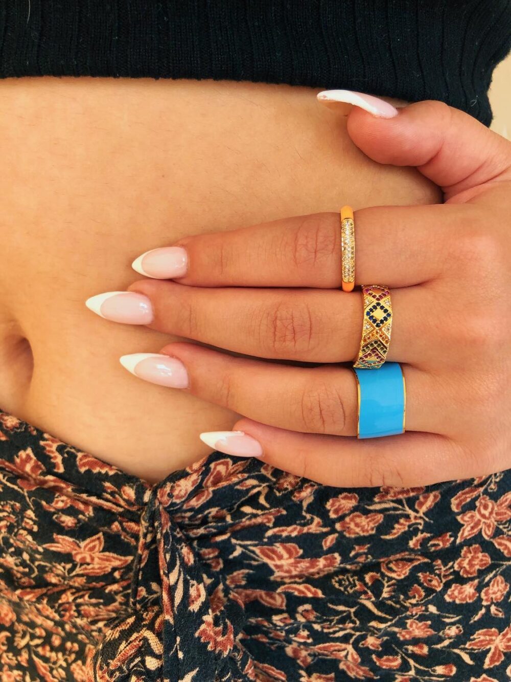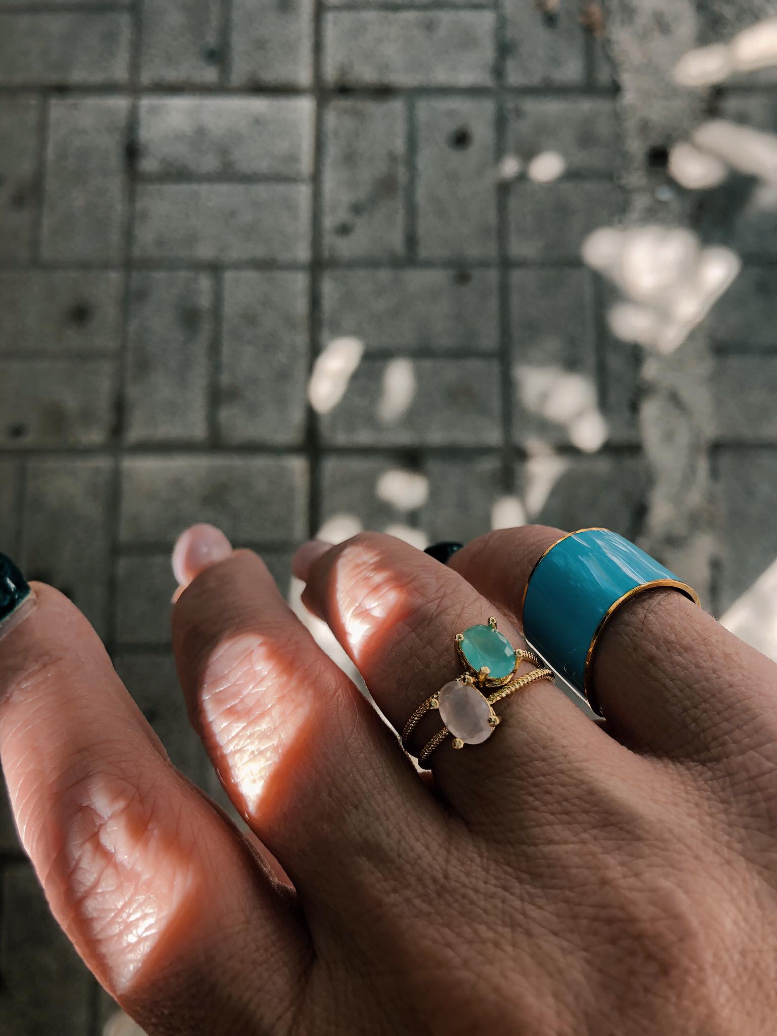 Δαχτυλίδι απο οικολογικό ορύχαλκο , επιχρυσωμένο ,με κοραλι σμάλτο σε ολη την πανω επιφάνεια.