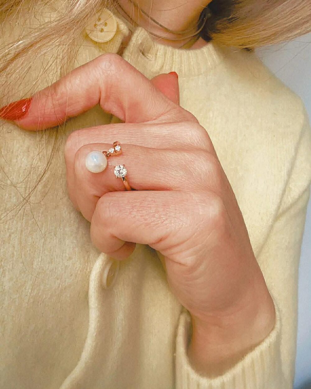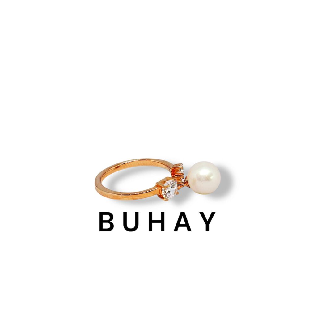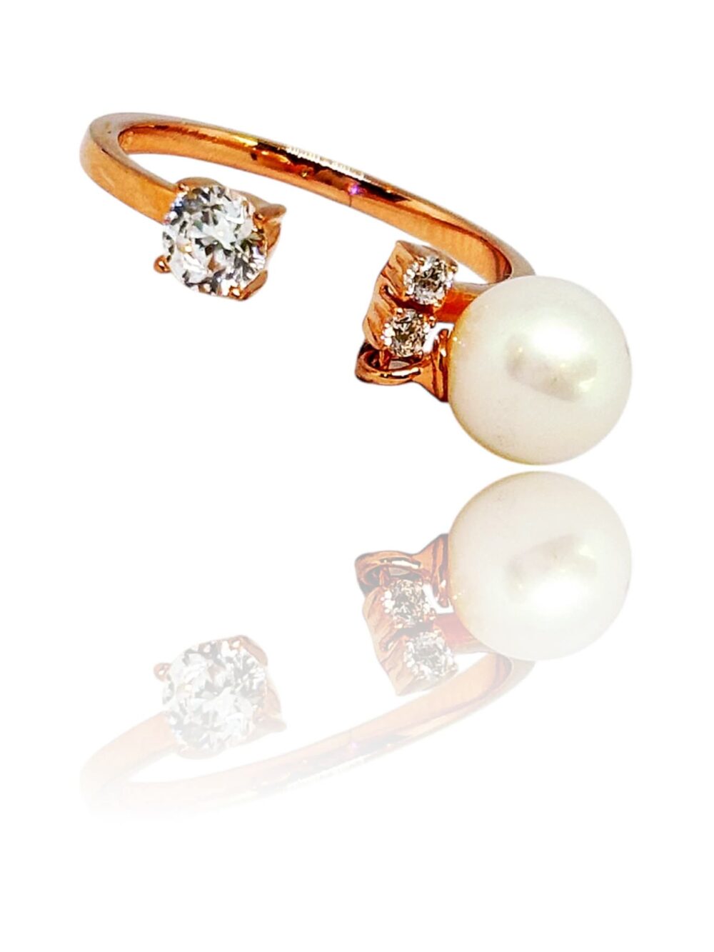Δαχτυλίδι απο ασήμι 925* , με ρόζ χρύσωμα. Ανοιχτό απο πάνω με ζιργκόν και μια πέρλα που κρέμεται.