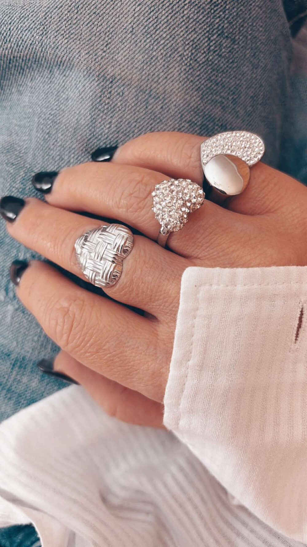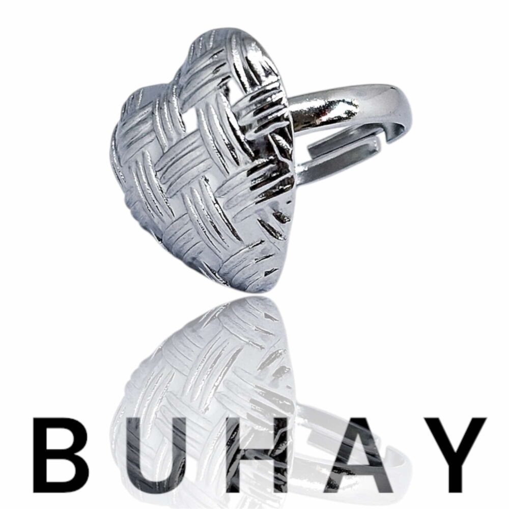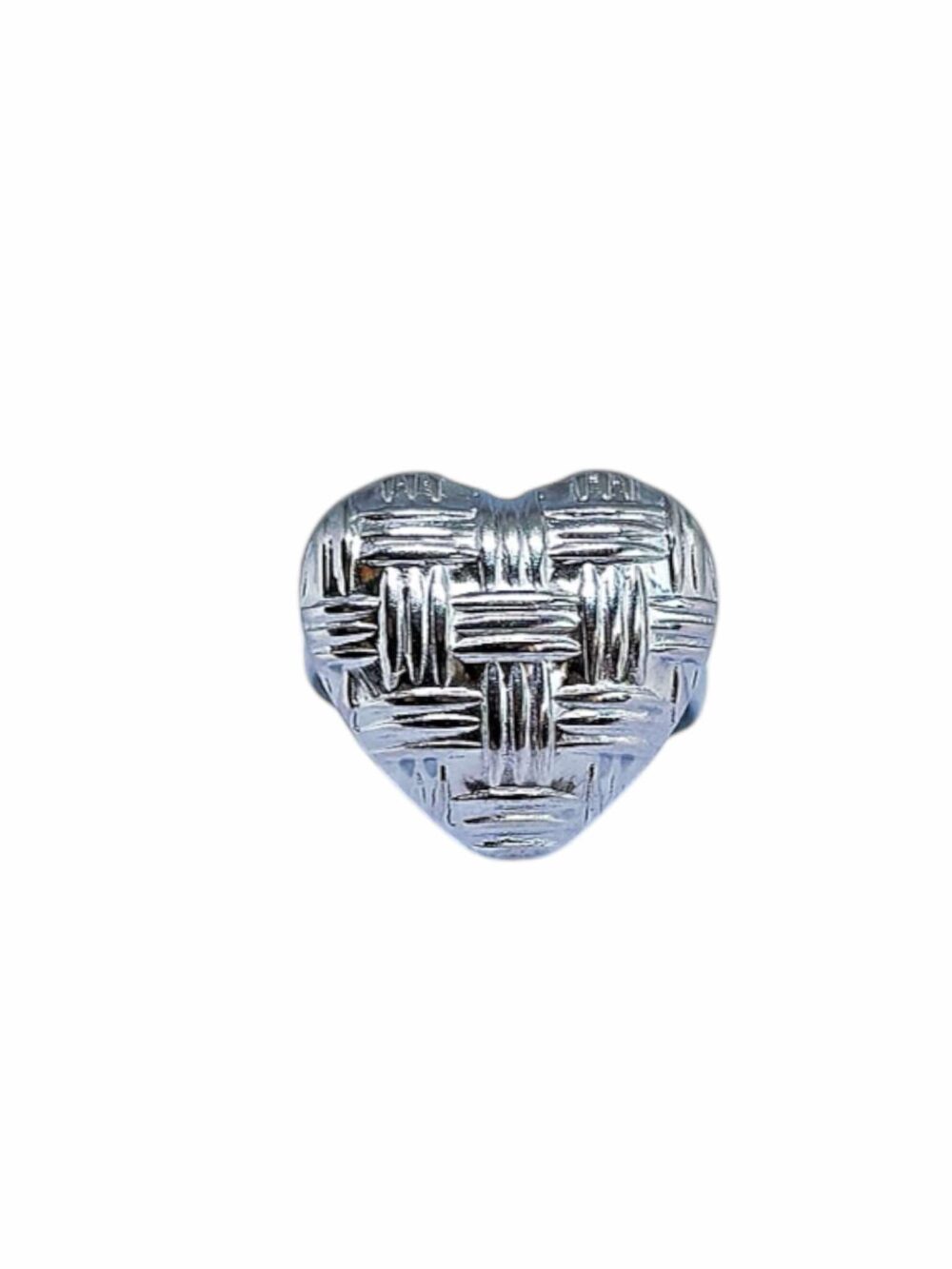 Δαχτυλίδι απο ανοξείδωτο ατσάλι.Καρδιά που κάνει σχέδιο πλέξη. Ανοιγώμενο, αυξομειώνεται εως 3 νούμερα.