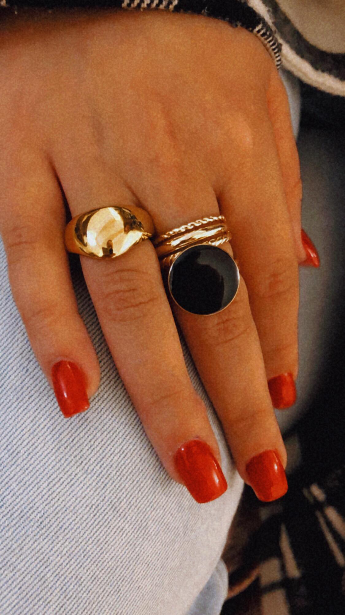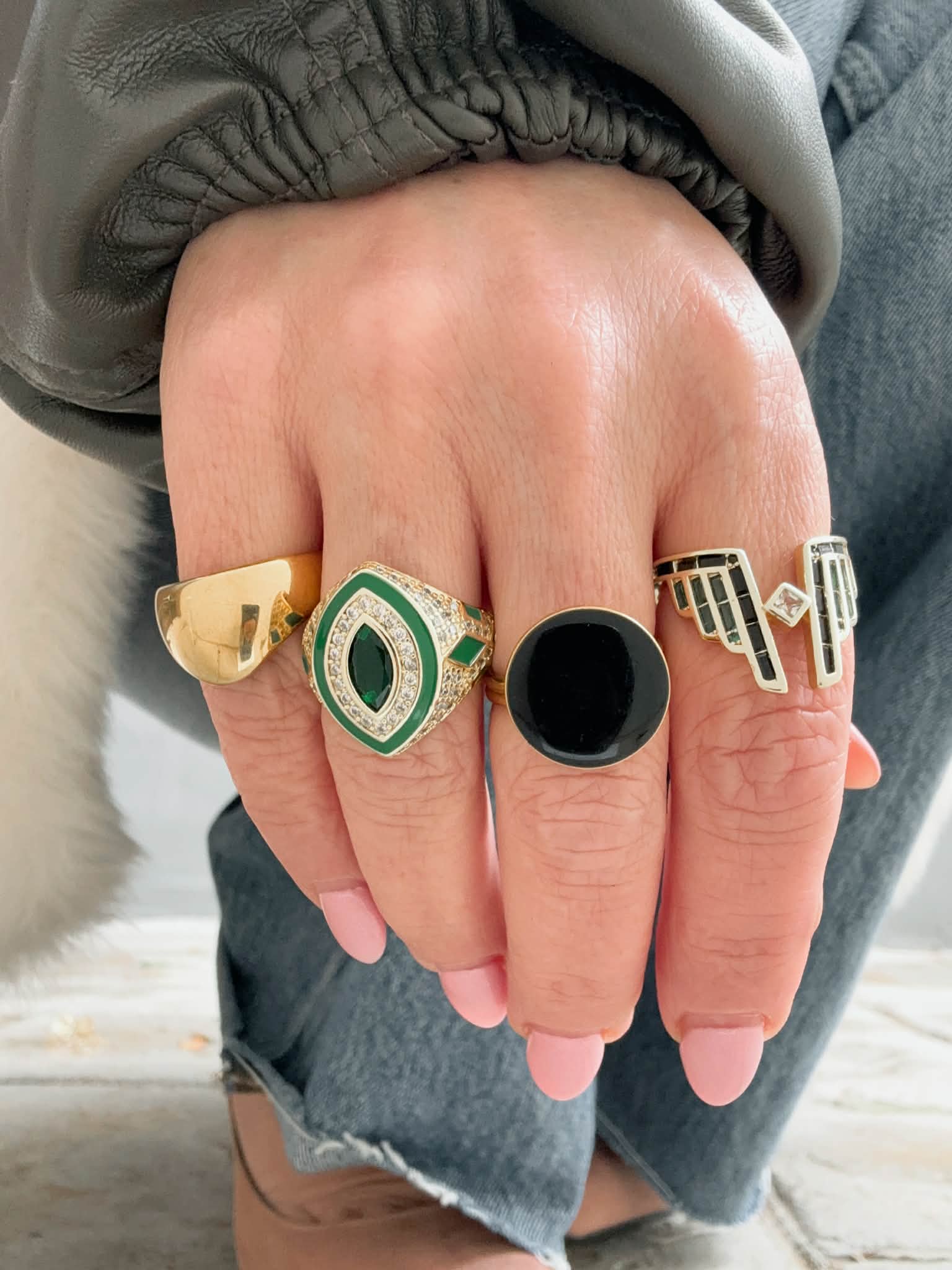 Δαχτυλίδι απο ανοξείδωτο ατσάλι , επιχρυσωμένο. Στρογγυλό με μαυρο σμάλτο .