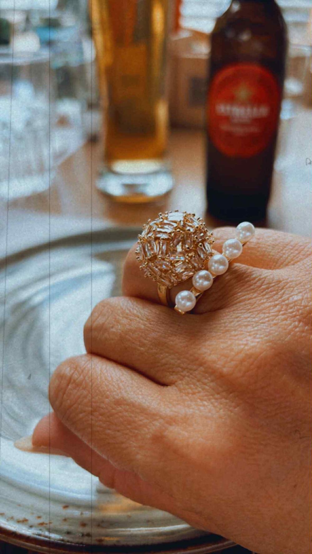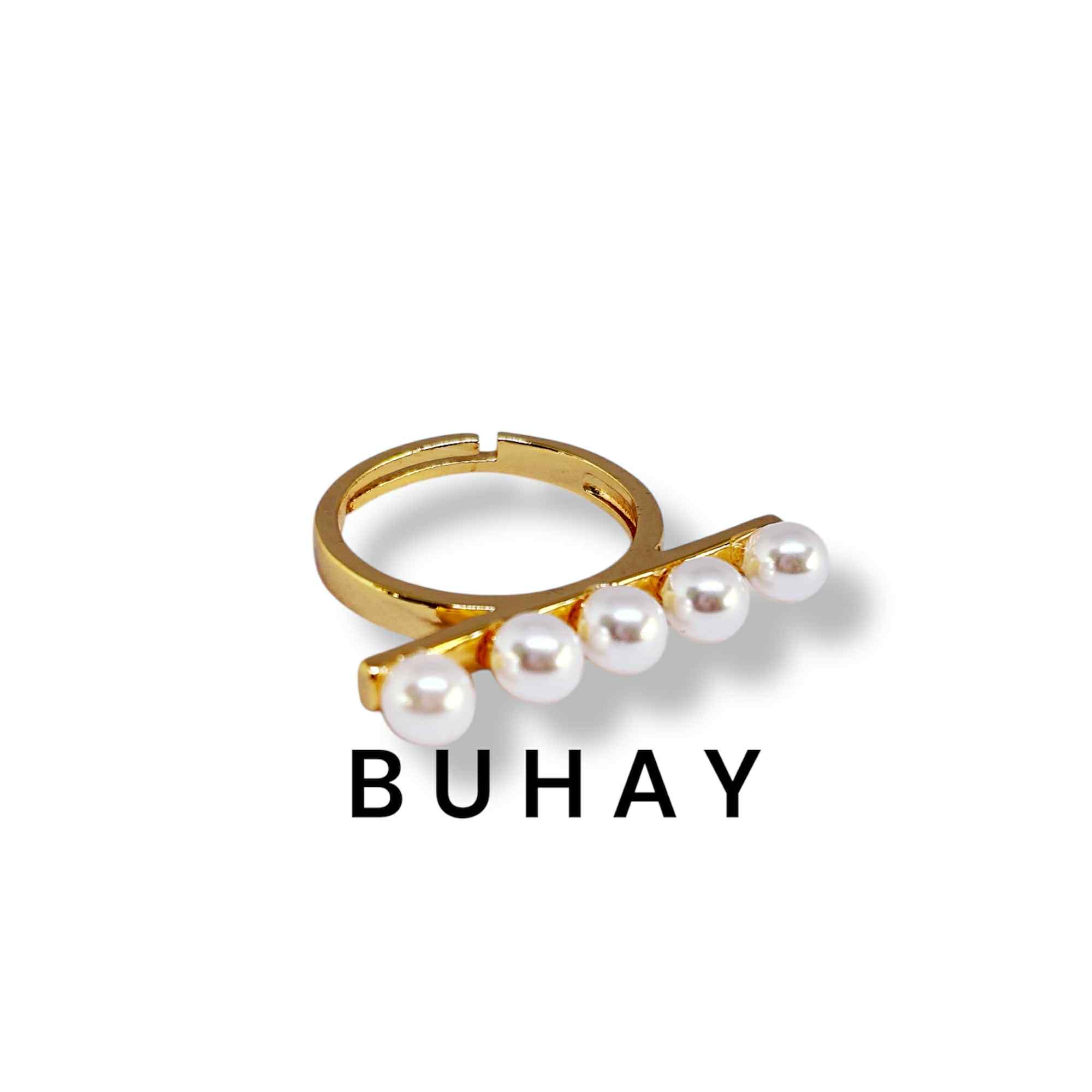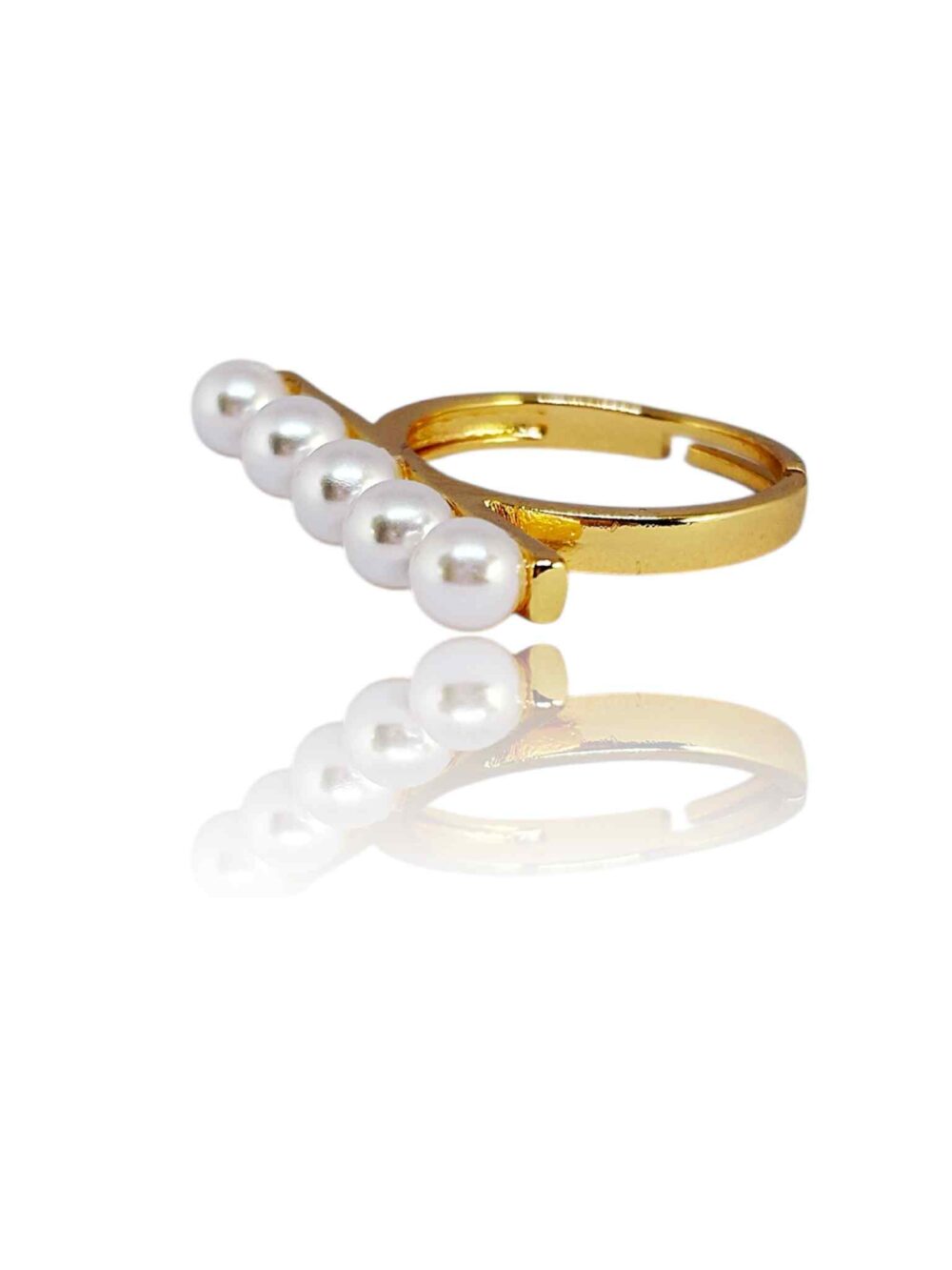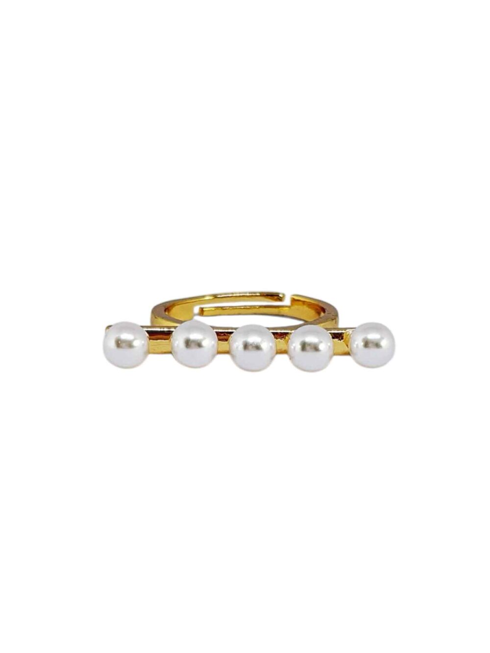 Δαχτυλίδι απο οικολογικό ορύχαλκο επιχρυσωμένο. Μπάρα με πέρλες. Ανοιγώμενη γάμπα , αυξομειώνεται εως 3 νούμερα.
