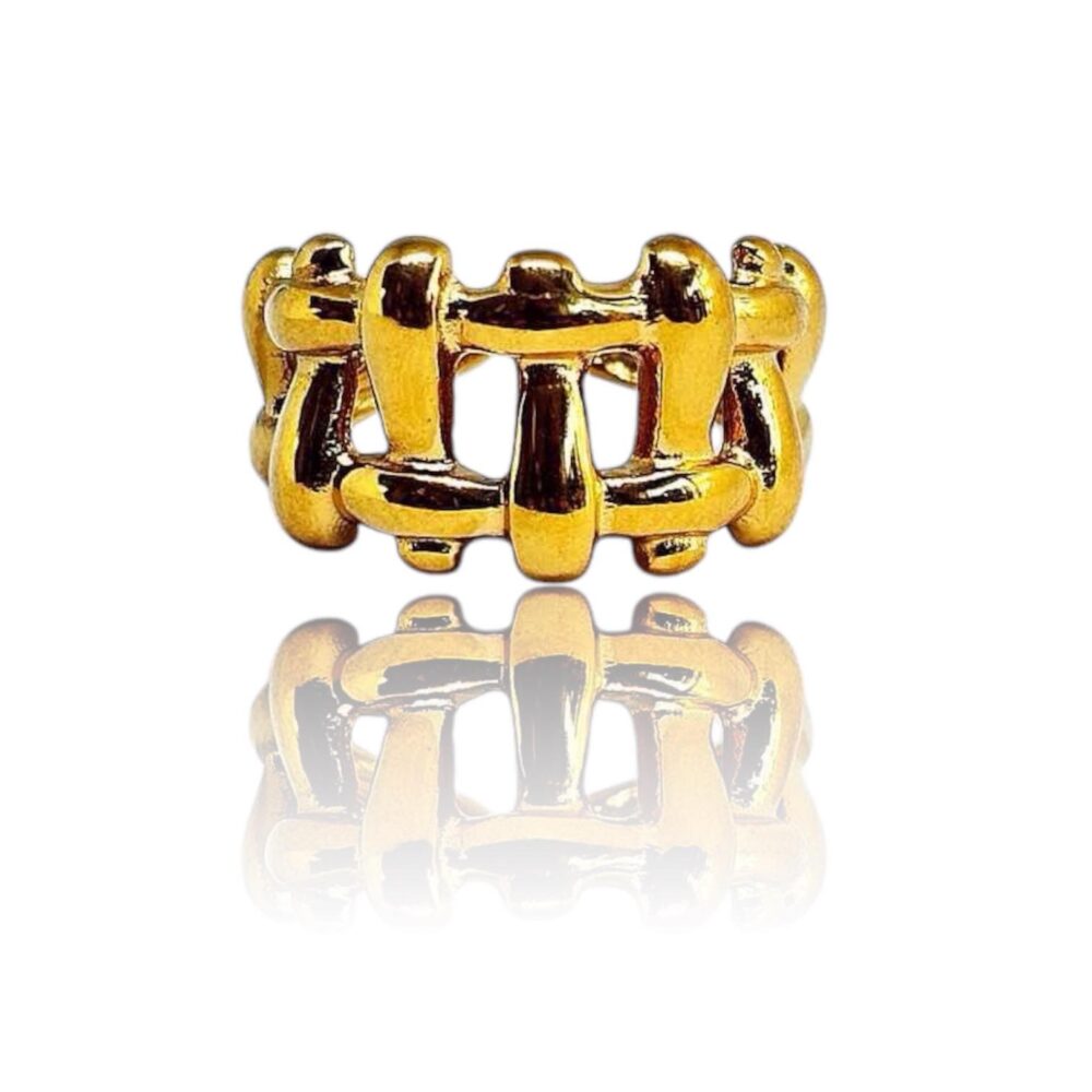 Δαχτυλίδι απο ανοξείδωτο ατσάλι , επιχρυσωμένο. Με ανοιχτή γάμπα , αυξομειώνεται εως 3 νούμερα.