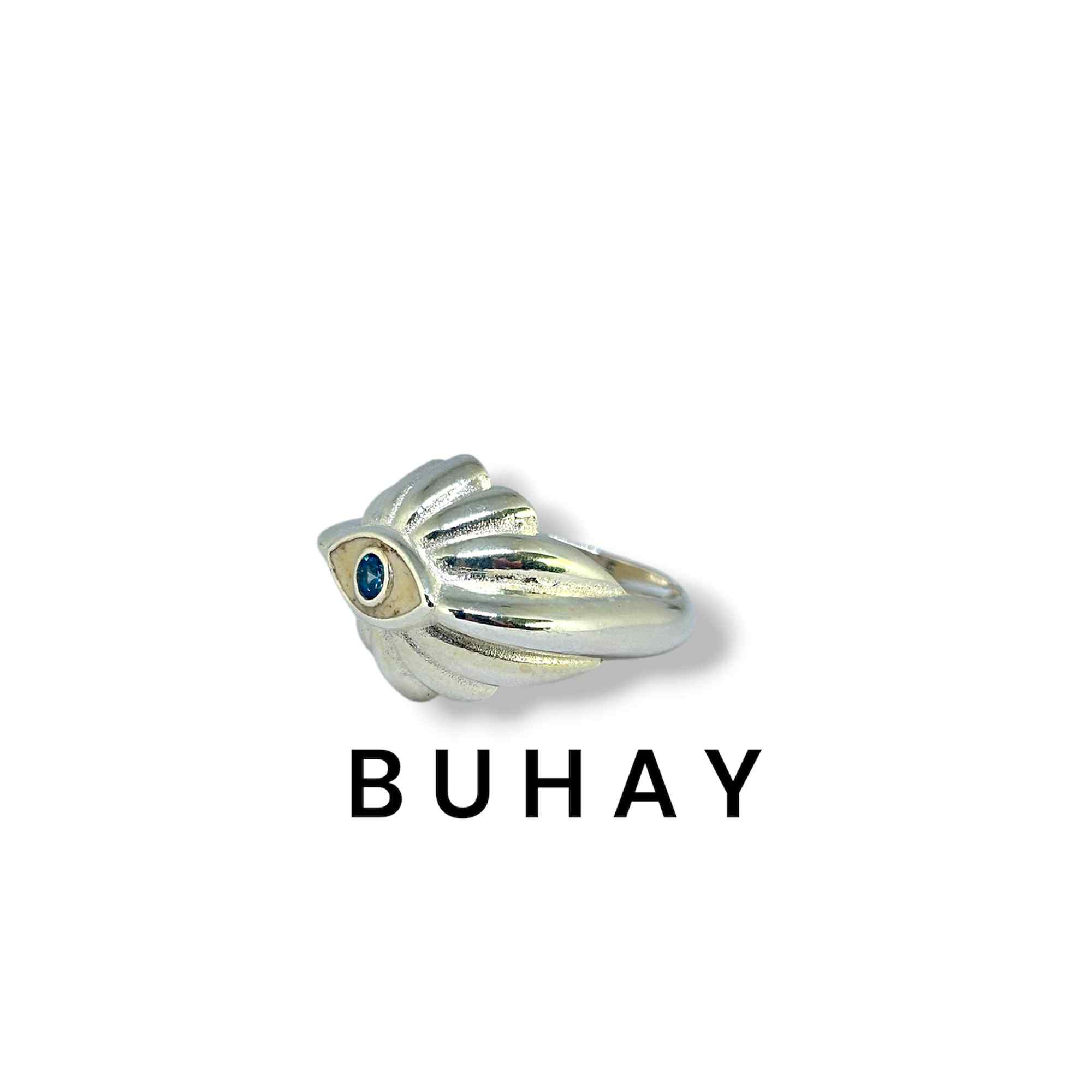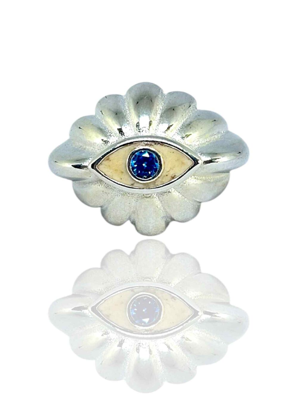 Δαχτυλίδι απο καθαρό ασήμι 925*. Με λευκό σμάλτο και μπλέ τοπάζ.