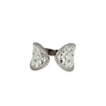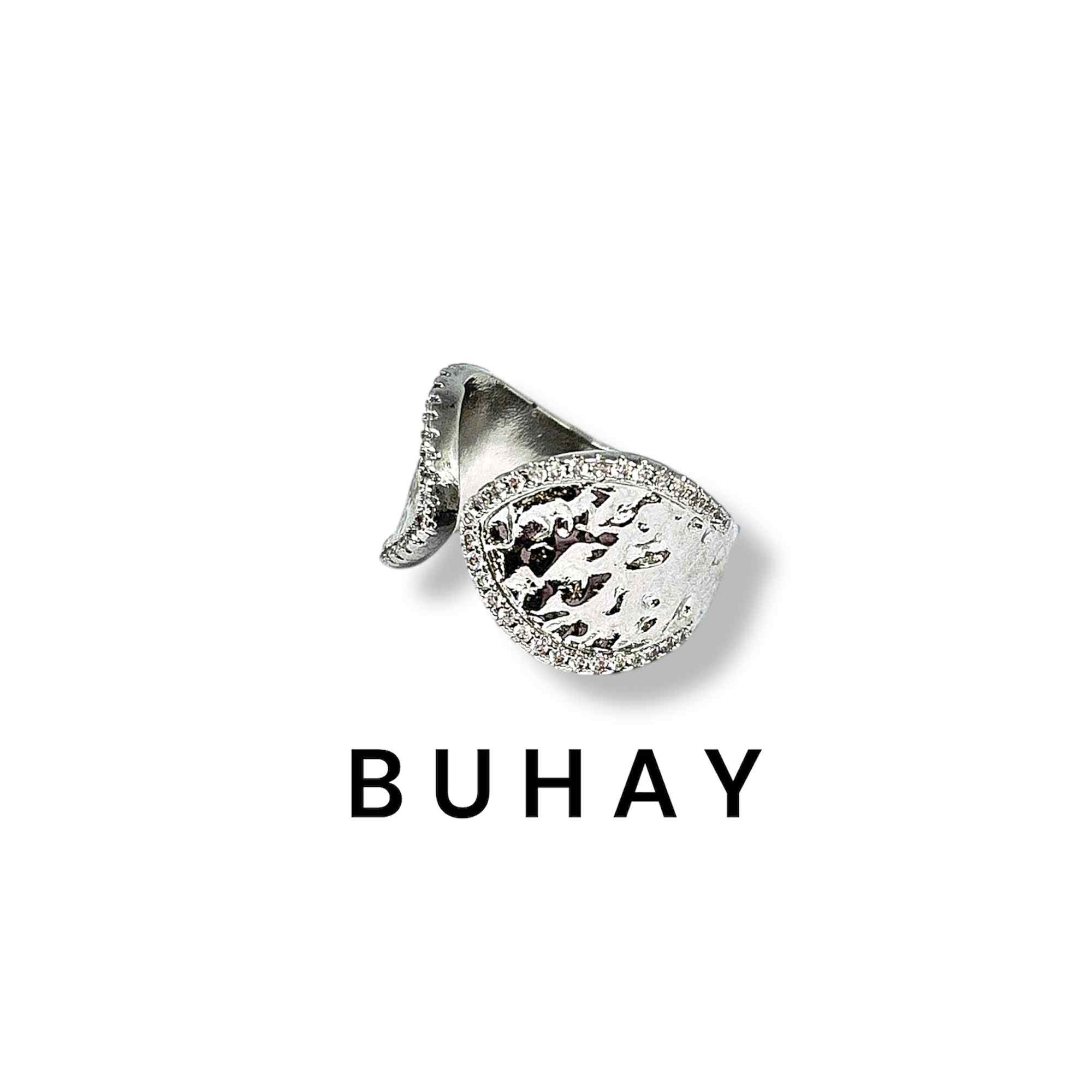 Δαχτυλίδι απο οικολογικό όρειχαλκο , επιπλατινωμένο. Σφυρίλατο με ζιργκόν. Ανοιχτό απο πάνω , αυξομειώνεται εως 3 νούμερα.